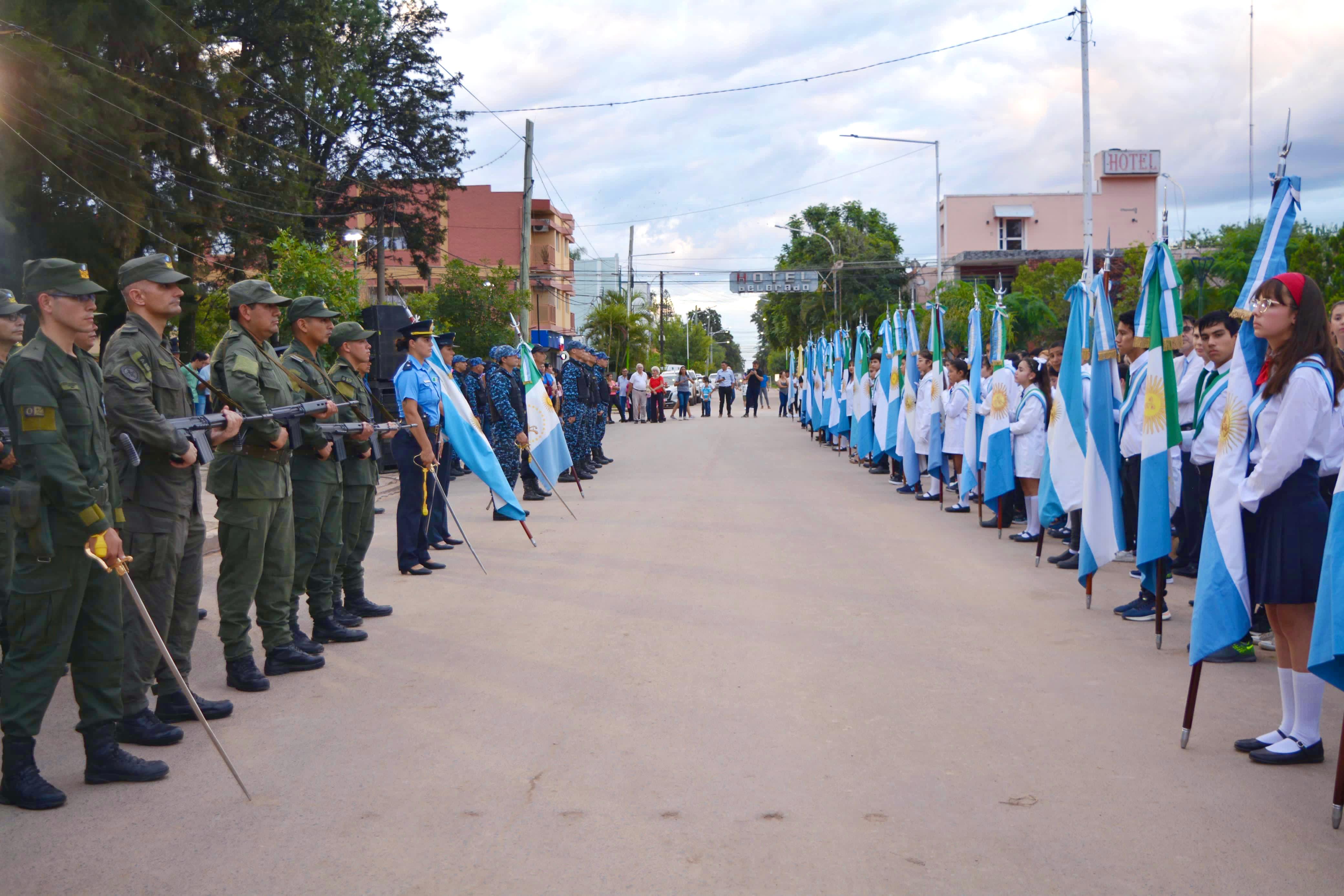 El gobernador Leandro Zdero junto a la vicegobernadora Silvana Schneider, acompañó este lunes el acto por el 115° aniversario de General San Martín, que se llevó adelante en la Plaza Central.