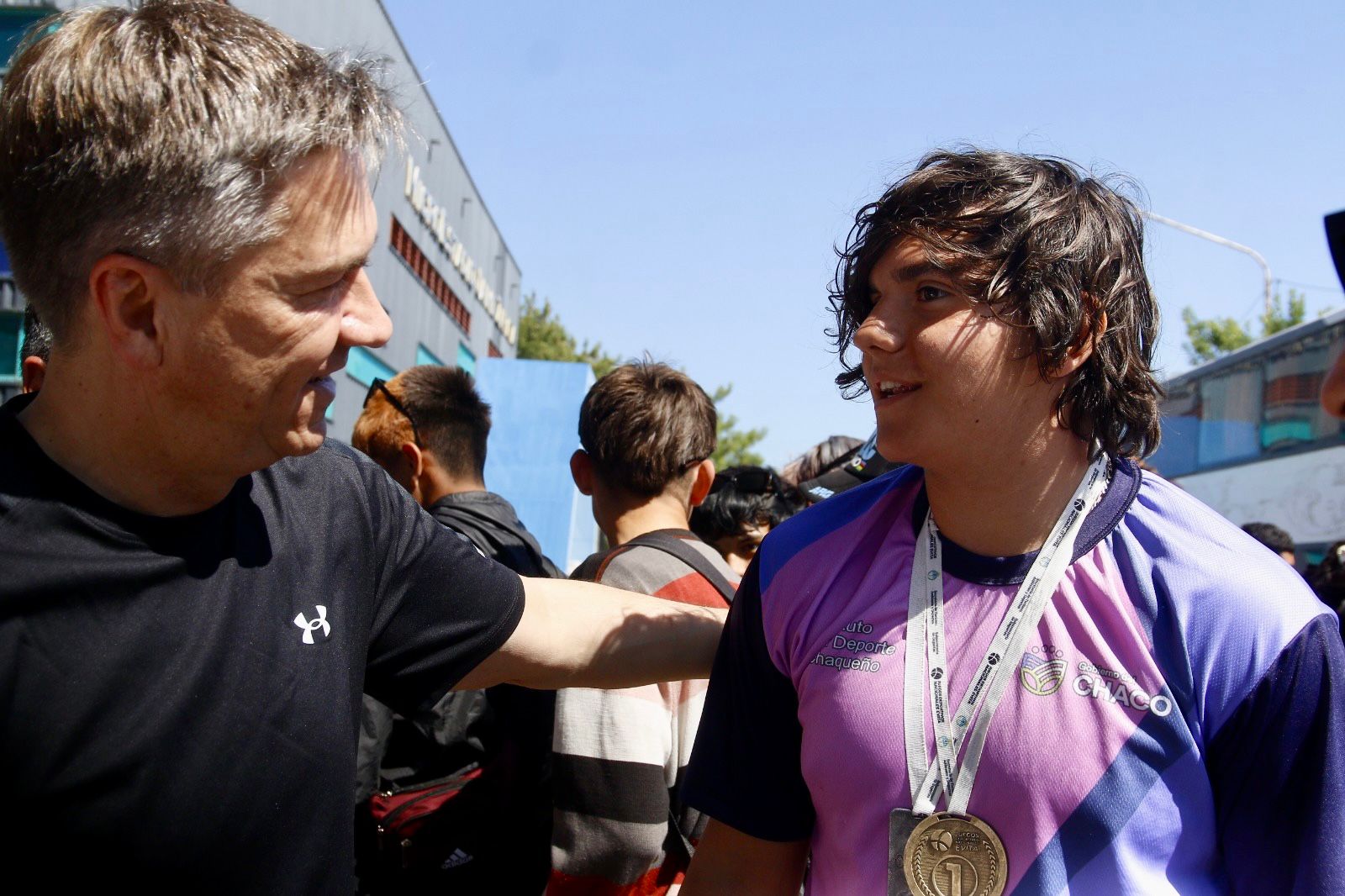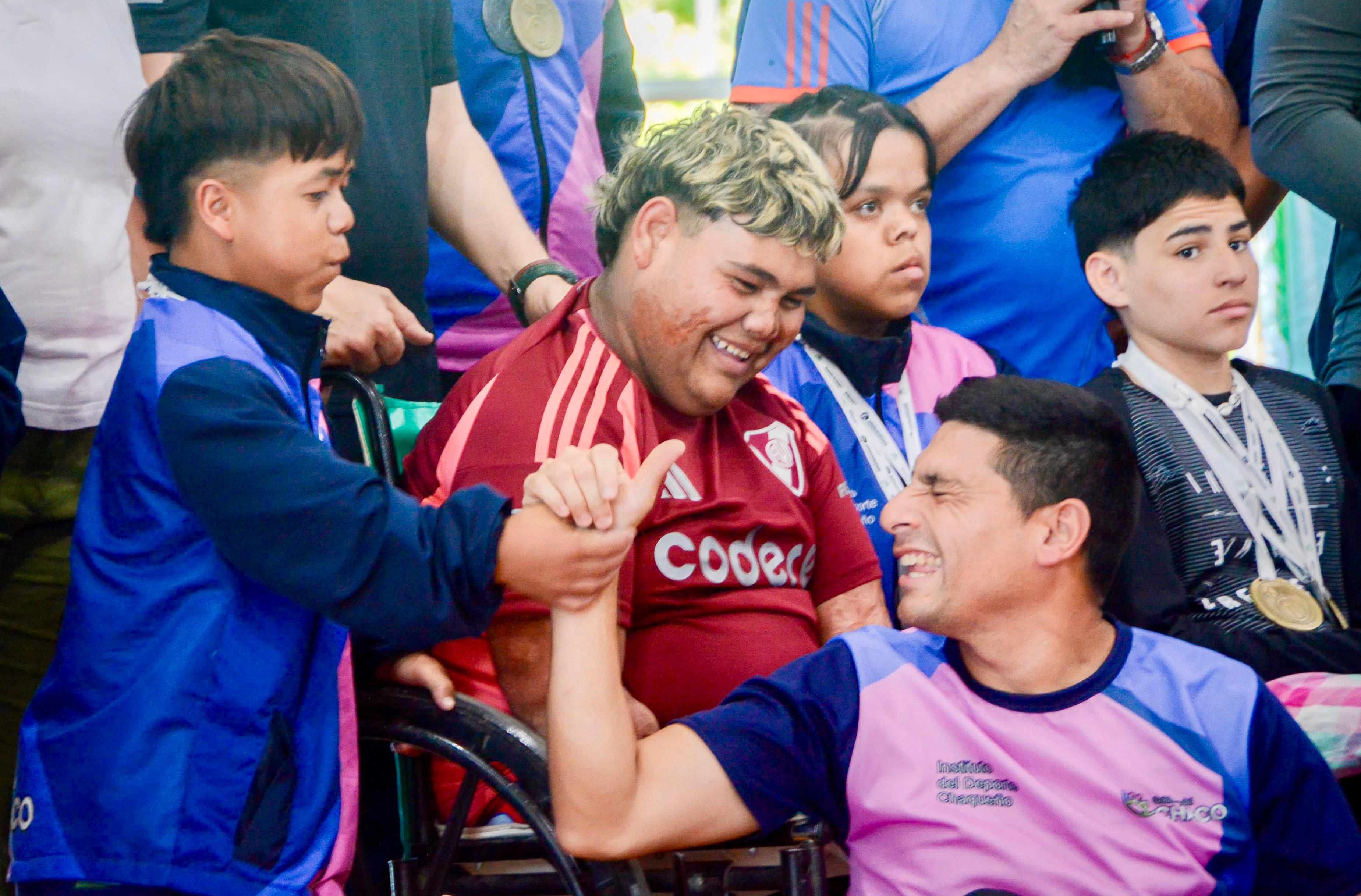 El deportista chaqueño Dylan expresó: “Soy Dylan, competí y gané en natación adaptada, 2 medallas de oro y 1 de plata, y quiero agradecer a todo el Gobierno del Chaco por hacer posible el viaje a toda la delegación y a todos los profes que nos ayudaron y estaban con nosotros para que hoy estemos de nuevo acá”.