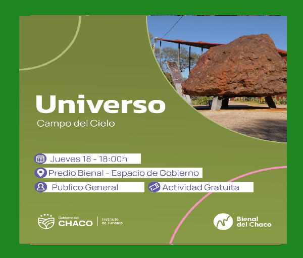 Los invitamos para una fascinante introducción a las maravillas del cielo chaqueño. Contaremos con la presencia del municipio de Gancedo, guías del centro de interpretación y personal del Campo del Cielo, quienes compartirán su conocimiento y pasión por este increíble fenómeno cósmico.
