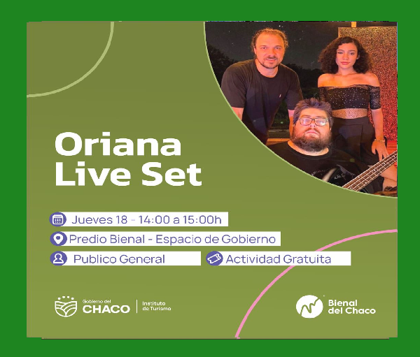 Oriana, la Embajadora de Destino Chaco, nos llevará en un viaje musical a través de los encantos turísticos de la provincia. Su live set de covers fusionados promete ser una experiencia única que reflejará la diversidad y riqueza turística de Chaco.