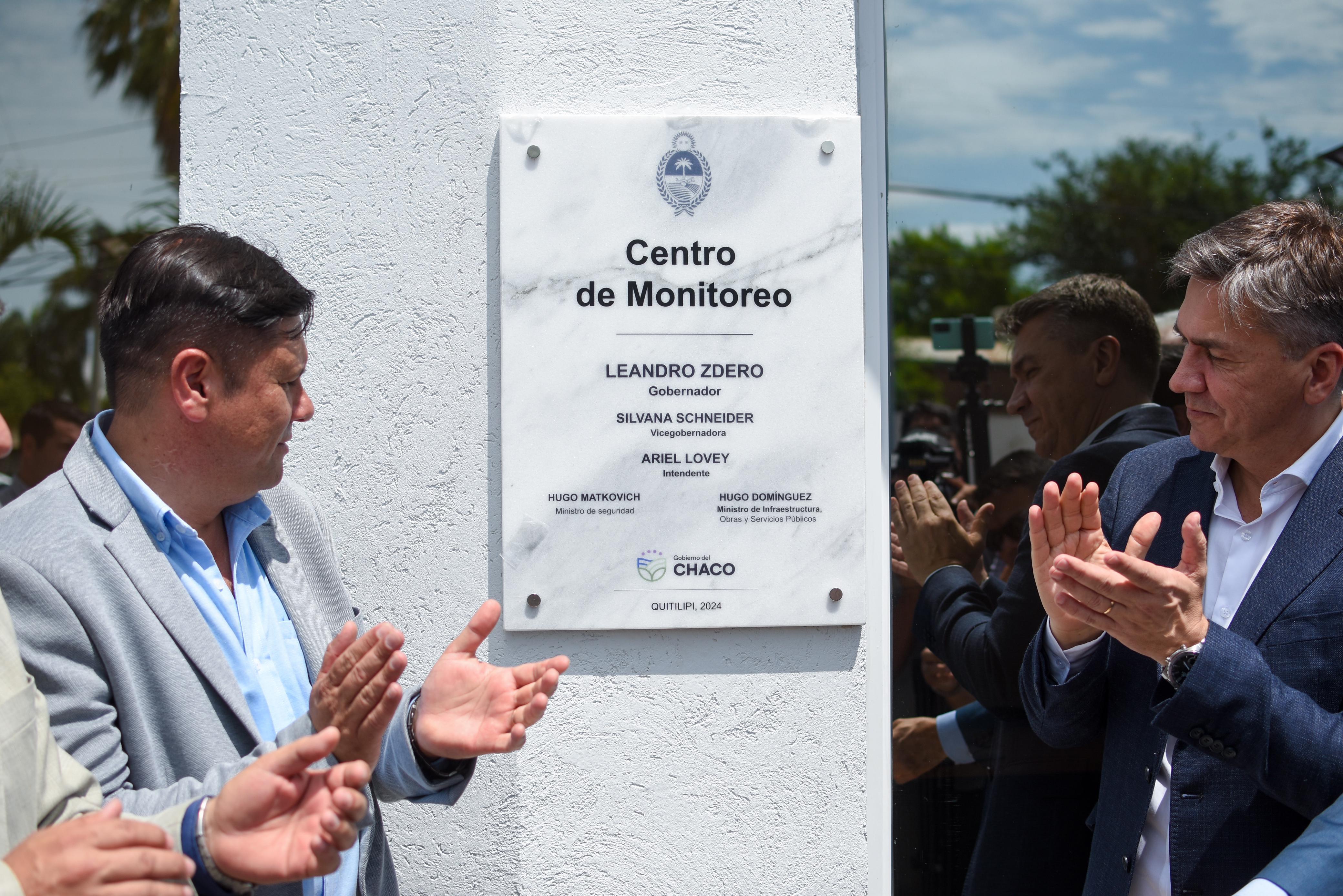 En el marco del aniversario 112º de Quitilipi, el gobernador Leandro Zdero inauguró, este sábado, junto al ministro de Seguridad, Hugo Matkovich, al intendente Ariel “Quitito” Lovey, al ministro Hugo Domínguez de Infraestructura y al presidente de ECOM, Adrián Veleff el Centro de Monitoreo que cuenta con 20 cámaras fijas de videovigilancia y 2 cámaras Domo para prevenir el delito y que favorecerá a la seguridad de los vecinos. “Un nuevo centro de Monitoreo que venimos coordinando con los municipios locales, en este caso, aquí en Quitilipi, poniendo en funcionamiento y articulando también con la Policía. De esta manera, logramos mayor seguridad en las localidades con un sistema coordinado con toda la Policía de la provincia y porque es un paso importante, para la seguridad de los quitilipenses con un trabajo importante también de Ecom donde también se irán agregando progresivamente más cámaras”- remarcó el Gobernador.