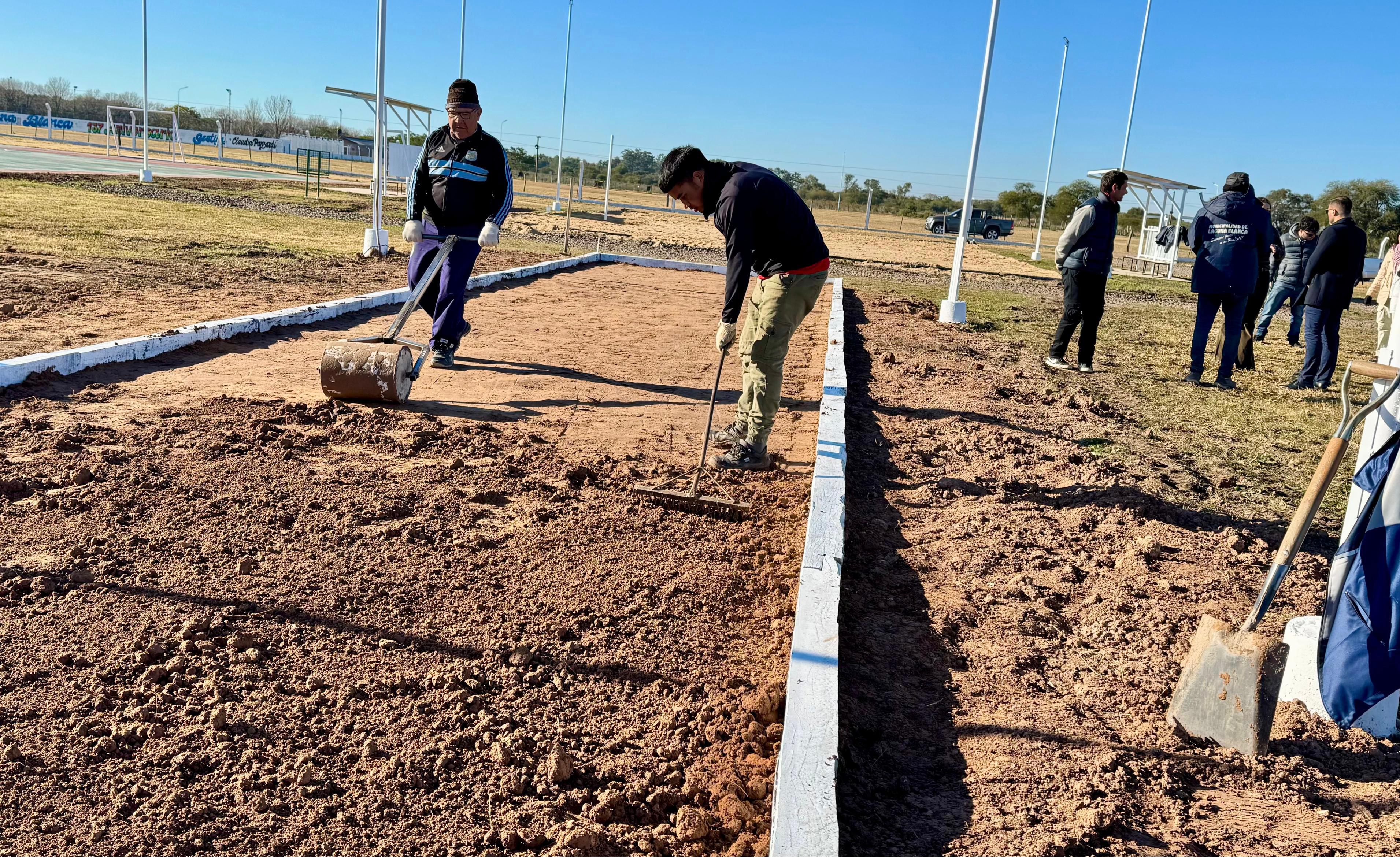 En esta ocasión las autoridades estuvieron presentes en el predio y observaron como avanzó dicha obra. Se trata de un Complejo Recreativo y Deportivo Municipal, ubicado estratégicamente en el casco céntrico de Laguna Blanca.