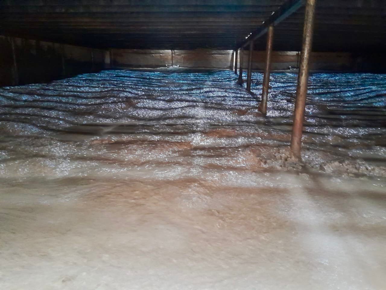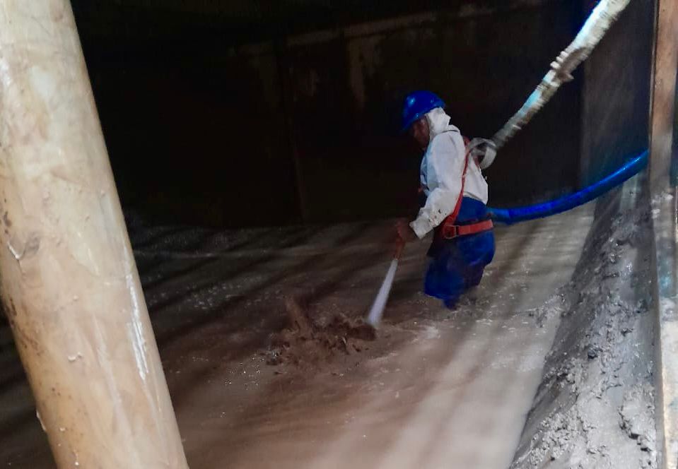 Concretamente se trata del decantador 5 de la Planta Número 2 ampliación, con un promedio de 3 metros de barro. Con la colaboración del personal de Cisterna Sur-Gerencia de Servicios, de Higiene y Seguridad y del personal de la Gerencia Electromecánica se llevan adelante tareas que implican modificaciones estructurales y parte del sistema obsoleto de barrido implementado oportunamente. Además, se aprovecha la disminución de temperatura a fin de no complicar la producción de dicha planta.