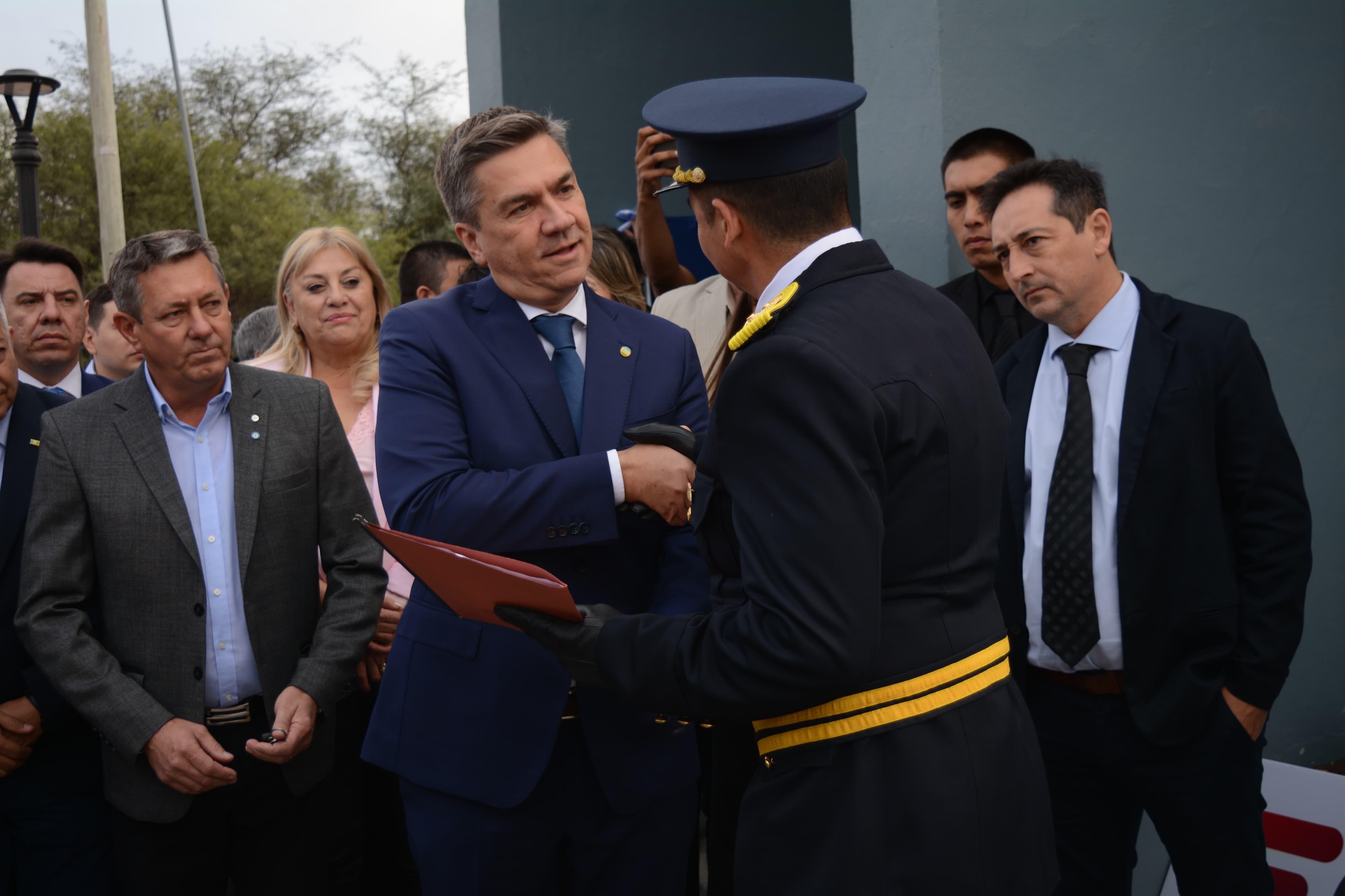 El gobernador estuvo acompañado por la vicegobernadora Silvana Schneider, el intendente Rubén Rach; el ministro de Seguridad, Hugo Matkovich, el jefe de Policía Comisario General (r) Fernando Javier Romero, el secretario de Asuntos Estratégicos Marcos Resico; el secretario coordinador de Gabinete, Livio Gutiérrez; las diputadas provinciales Dorys Arkwright y Laura Bisonni; el Subjefe de Policía Comisario General Manuel Victoriano Silva; Director Ejecutivo CE.AC Comisario General Cristian Antonio Durand.