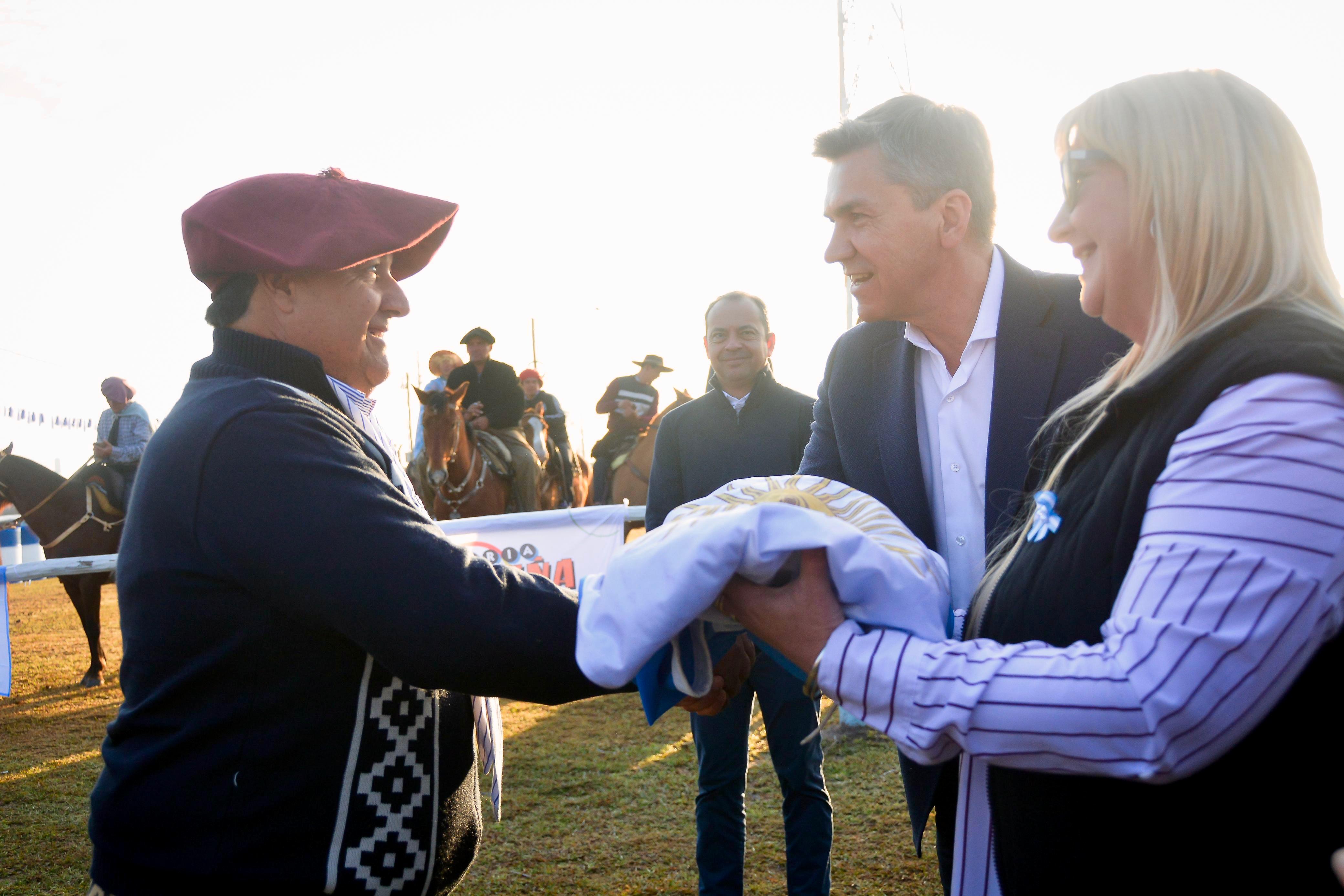 El gobernador Leandro Zdero acompañó este domingo del 1° Festival Provincial de la Bandera Argentina, realizado en la localidad de Colonia Popular. Luego de realizar el izamiento, junto a la vicegobernadora Silvana Schneider y a la intendente Mariela Soto, dio un discurso en el que destacó el valor simbólico y trascendental de la bandera argentina, así como la importancia de mantenernos unidos, incluso en momentos adversos. “Es un orgullo estar aquí en Colonia Popular en este festival que se tiñe de celeste y blanco, colores de nuestro corazón, pero fundamentalmente estos colores que terminan uniendo a todos los argentinos más allá de ideologías o pertenencias”, resaltó.
