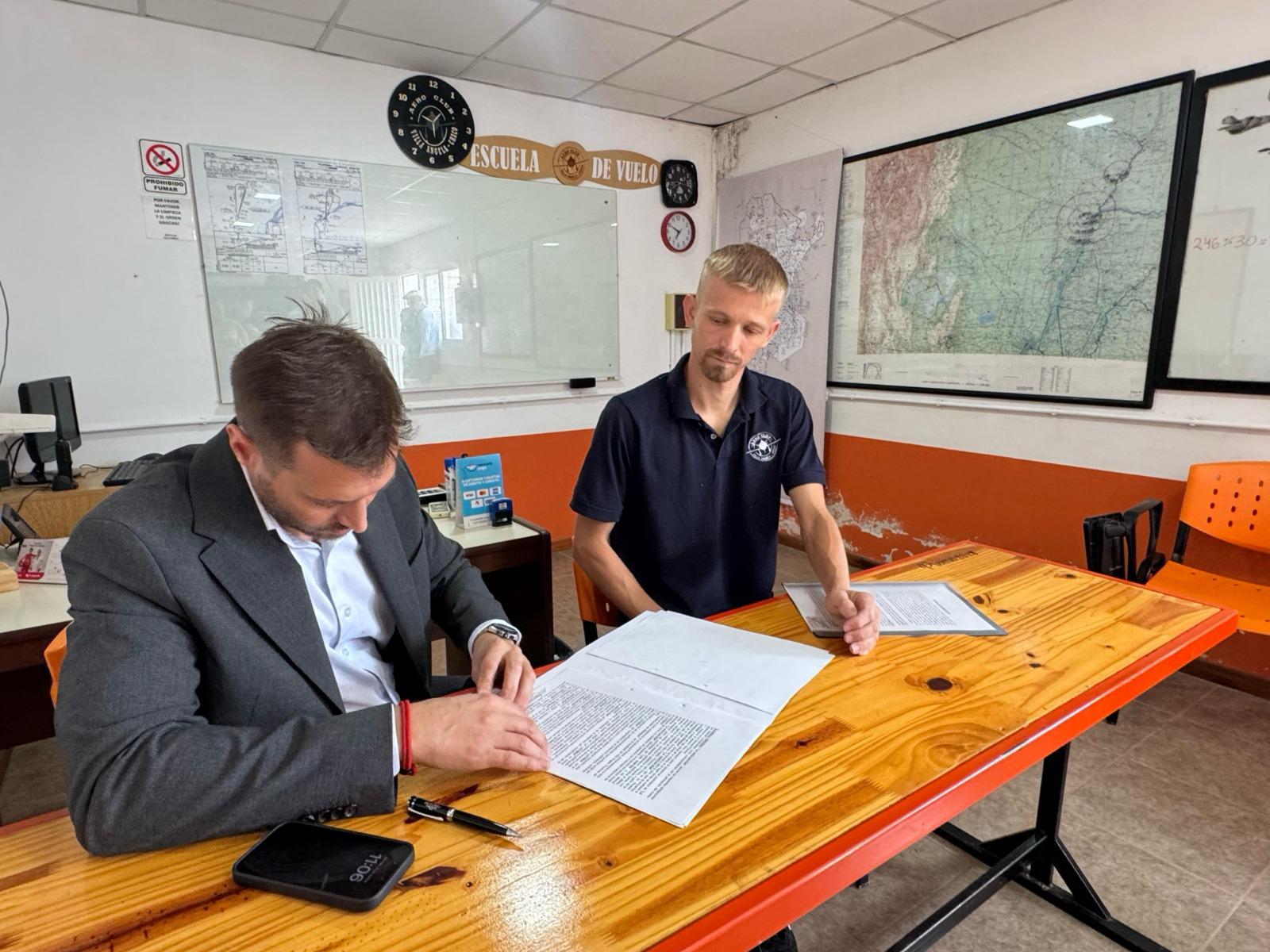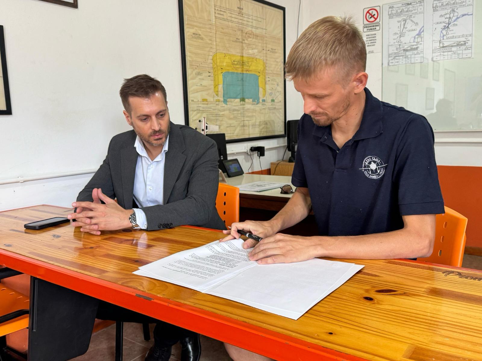 El acuerdo establece la construcción de un albergue que contará con habitaciones, cocina, duchas y núcleo sanitario. Esta obra beneficiará a los alumnos que asisten en el lugar que realizan la escuela de vuelo, como así también a los pilotos de la provincia.