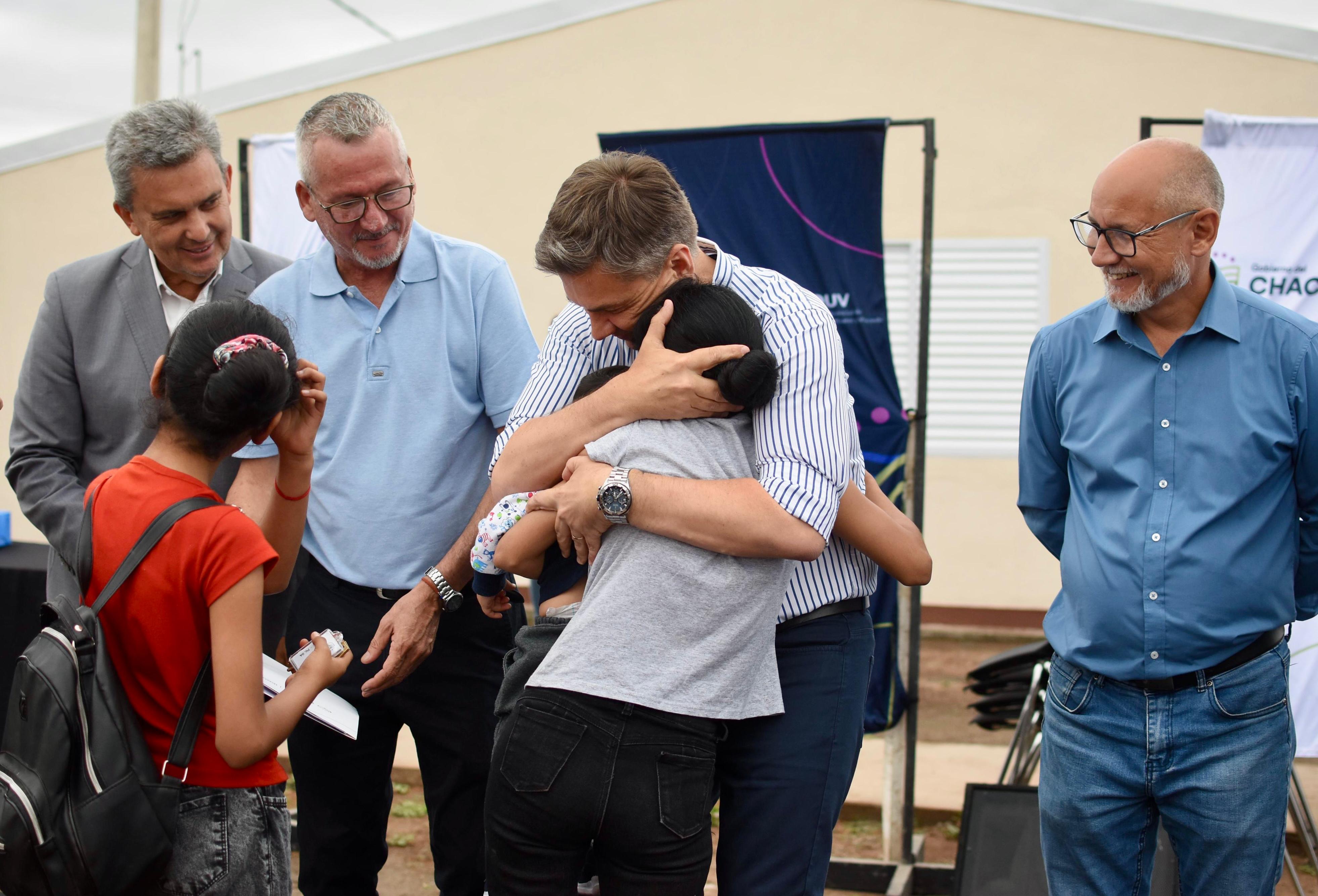 En el marco del aniversario N° 90 de Concepción del Bermejo, el gobernador Leandro Zdero junto al presidente del Instituto de Viviendas, Fernando Berecoechea, y al intendente Raúl Maldonado entregó, esta tarde, viviendas a familias de la localidad. “Nos explota el corazón de alegría, cada vez que se cumple un sueño, de las familias que estaban esperando su vivienda hace mucho tiempo, y hoy cumpliendo con ese compromiso que habíamos asumido en agosto, aquí en la localidad junto al intendente Raúl Maldonado, honrando la palabra de un Plan de Viviendas que estaba abandonado desde 2019. Las familias esperaban hace mucho tiempo, vamos por 12 viviendas más, por otras 20 que serán reactivadas, y por el Plan de las 10 viviendas Ñachec. Lo que pretendemos es proseguir con las obras, es importante terminarlas porque aquí las cosas estaban mal hechas, pasar por aquí eran ruinas, pero trabajamos y nos comprometimos para cumplir el sueño de muchos chaqueños que hoy ya tienen su casa propia”-manifestó el Gobernador.