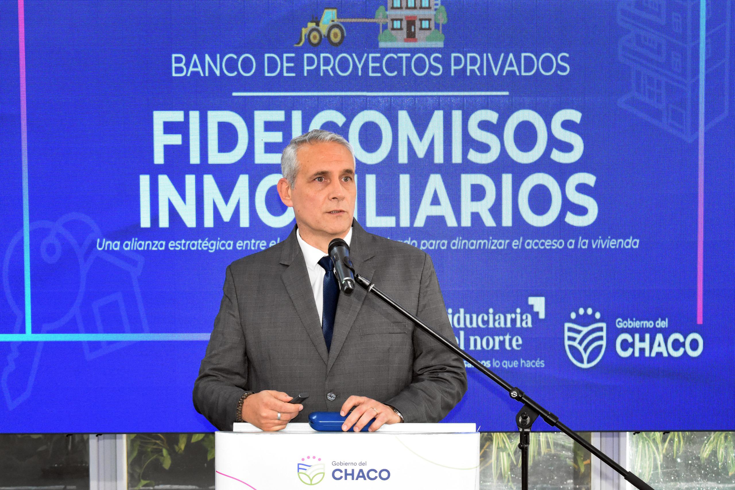 El presidente de Fiduciaria del Norte Gerardo Santos Oliveira expuso los principales detalles sobre el Banco de Proyectos Privados de Fideicomisos Inmobiliarios, que articula tres demandas claves: generación de empleo privado, acceso a la vivienda y fortalecimiento del motor productivo para todos los chaqueños.
