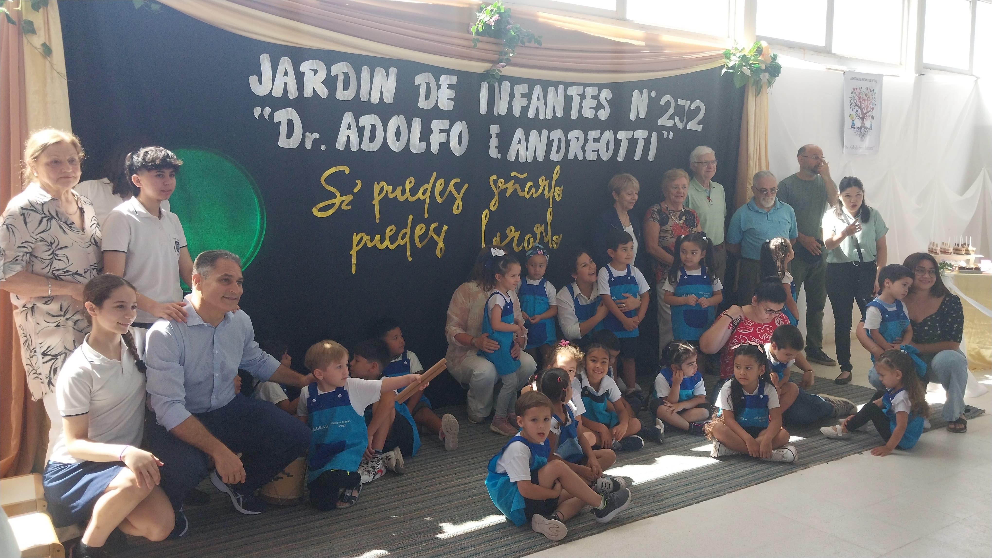 En la oportunidad, la directora del Jardín de Infantes Nº 232, Andrea Lisandra Astorga, comentó que: “Impusimos el nombre `Doctor Adolfo Andreotti´ al Jardín en homenaje al pediatra fallecido recientemente por toda su labor y su obra, por votación de la comunidad; se ha seleccionado ese nombre para que nos identifique”.