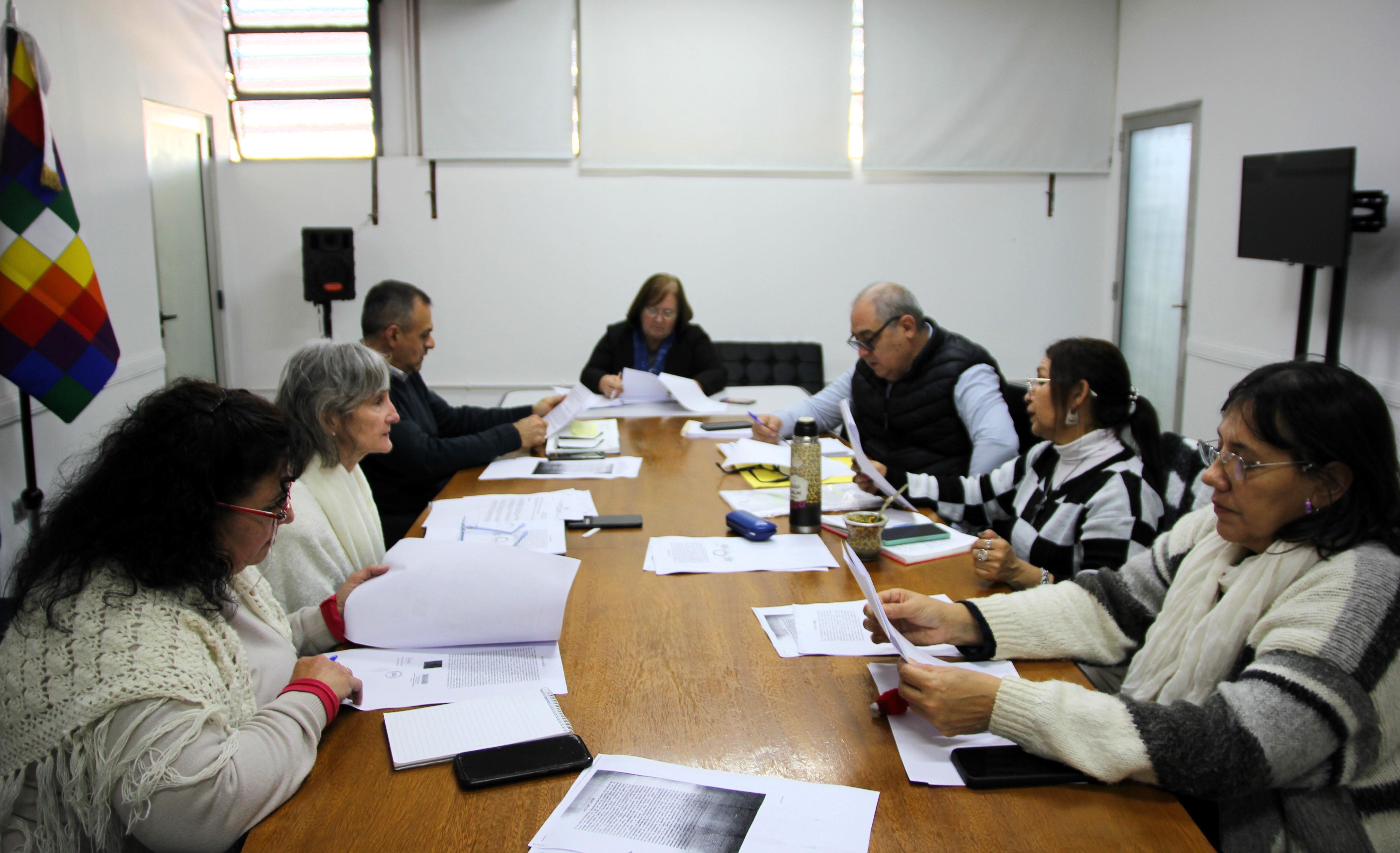 Las subsecretarias de Educación, Isabel Sanchuk, y de Descentralización Educativa, Marta Fassano, junto al director de Educación Superior, Luis Monzón, miembros de la Junta de Clasificación de Nivel Superior y el presidente del Consejo de Educación, Omar Maggio, concretaron este jueves una mesa de trabajo para continuar avanzando en el proceso de estabilidad laboral docente en el nivel Terciario, en el marco de la Ley N° 3896.
