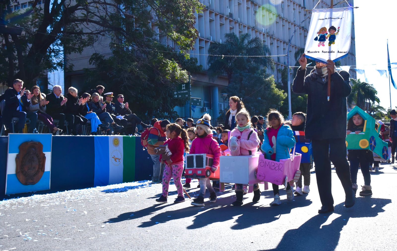Los festejos por el 9 de Julio en Resistencia, iniciaron esta mañana con el izamiento del Pabellón Nacional donde estuvo la vicegobernadora Silvana Schneider, representando al Poder Ejecutivo. Luego, se presentaron los saludos protocolares al Gobernador Leandro Zdero en el Salón Obligado, de Casa de Gobierno. Posteriormente, las autoridades asistieron al Tedeum en la Iglesia Catedral, para luego trasladarse al palco central, ubicado en Av. 25 de Mayo, intersección con Mitre y Santa M. de Oro.