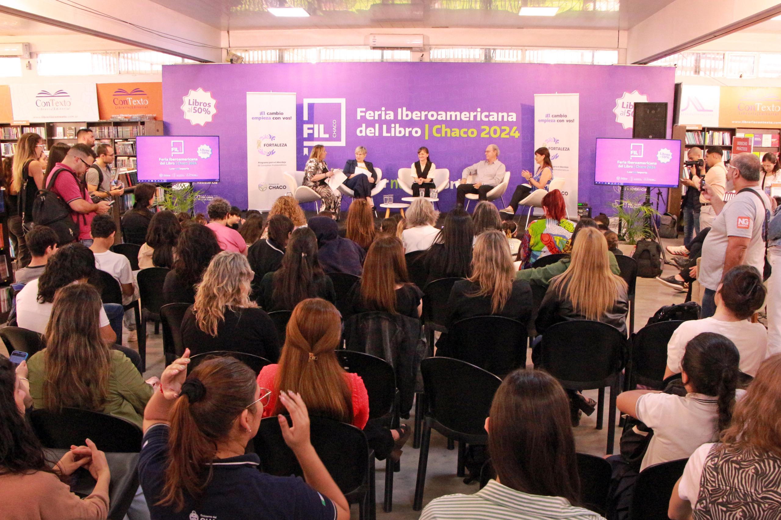 Del conversatorio, presentado por la coordinadora del programa Alejandra Castro, participaron Alejandra Alfonso, Lara Calabroni, Alejandro Barcala, Rodrigo Castillo y Denis Escobar. Estuvieron presentes la ministra de Educación Sofía Petcoff Naidenoff y la subsecretaría de Educación Isabel Sanchuk, la intendenta de Santa Sylvina Susana Maggio y el director de la editorial Contexto -organizadora de la FIL- Rubén Duk.
