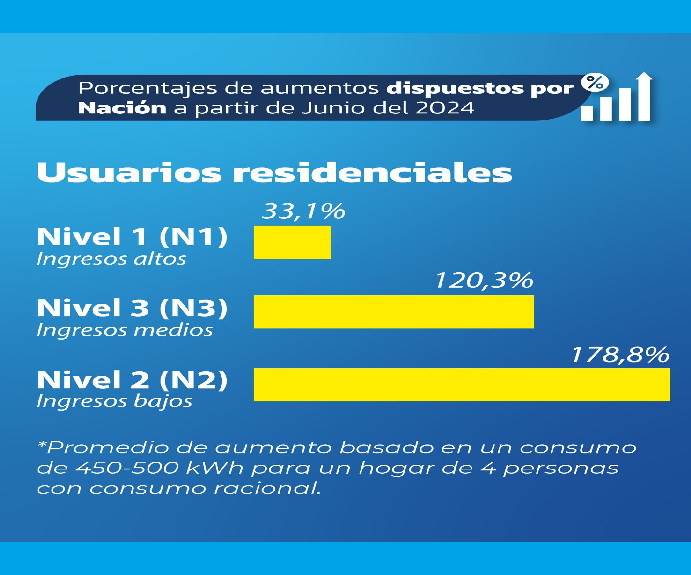 Para ilustrar el impacto de los cambios, se considera un consumo promedio residencial de 350 kWh mensuales. Bajo esta nueva estructura de precios, las facturas finales mensuales de los clientes residenciales serán las siguientes según el nivel de segmentación: