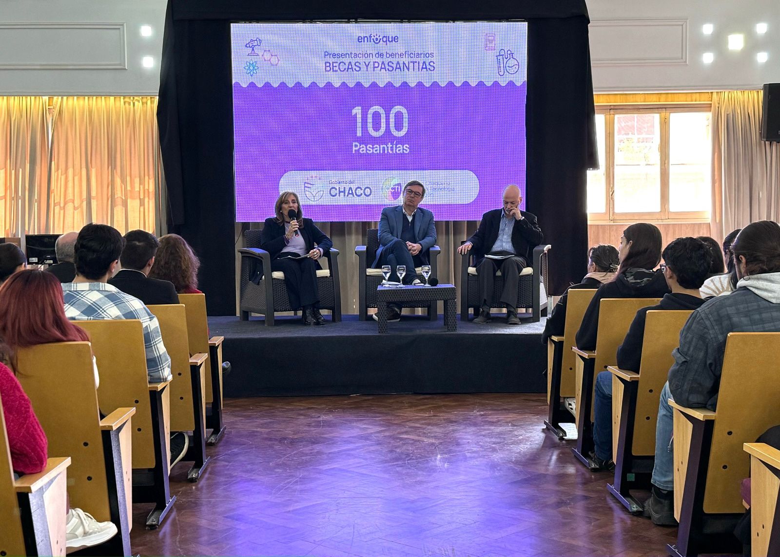 El Gobierno del Chaco, a través del Instituto Chaqueño de Ciencia, Tecnología e Innovación (ICCTI), presentó hoy en el Aula Magna de la UNNE a los beneficiarios del programa de becas y pasantías 2024. Son 100 estudiantes universitarios avanzados que se incorporarán a organismos públicos para realizar prácticas profesionales rentadas durante un año y más de 250 becarios, tanto ingresantes como avanzados. El acto contó con la presencia del secretario de Coordinación de Gabinete, Livio Gutiérrez, representantes de la UNNE, UTN y UNCAUS y funcionarios de distintos organismos de la provincia.