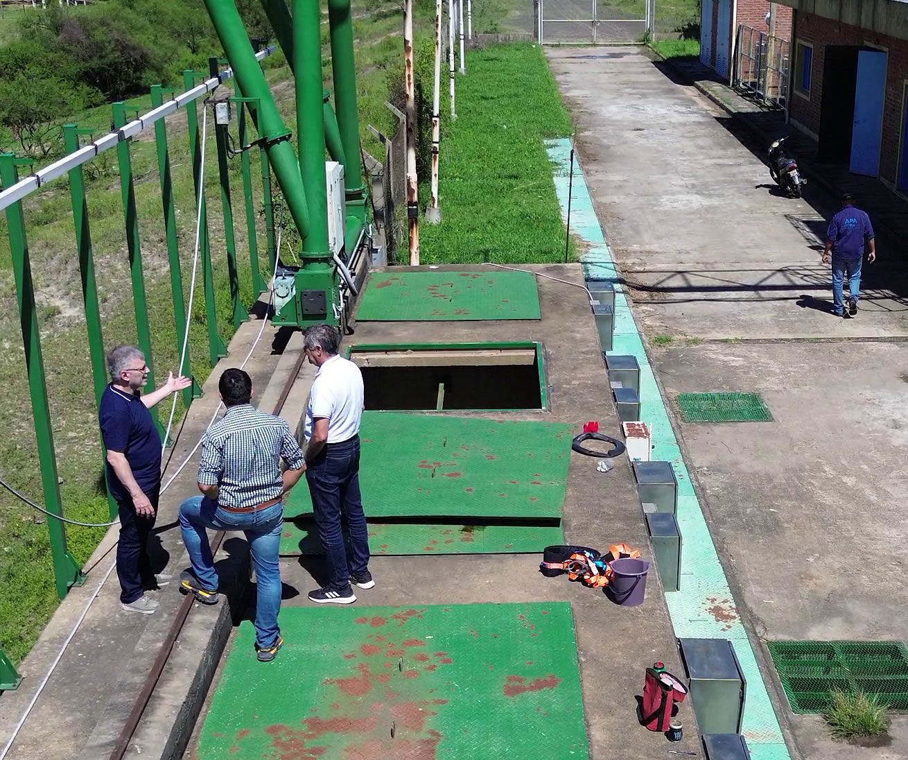 Acompañado por el Secretario Técnico de la APA, Guillermo Méndez, y el Director de Sistemas Hídricos, Omar Navarro, junto a técnicos y operadores de la obra de control, verificó el funcionamiento de la bomba Flygt, con capacidad de bombeo de 3 metros cúbicos por segundo, que bombea desde el reservorio sur del canal de Soberanía Nacional, en la zona de Puerto Vilelas, hacia el valle del Río Paraná.