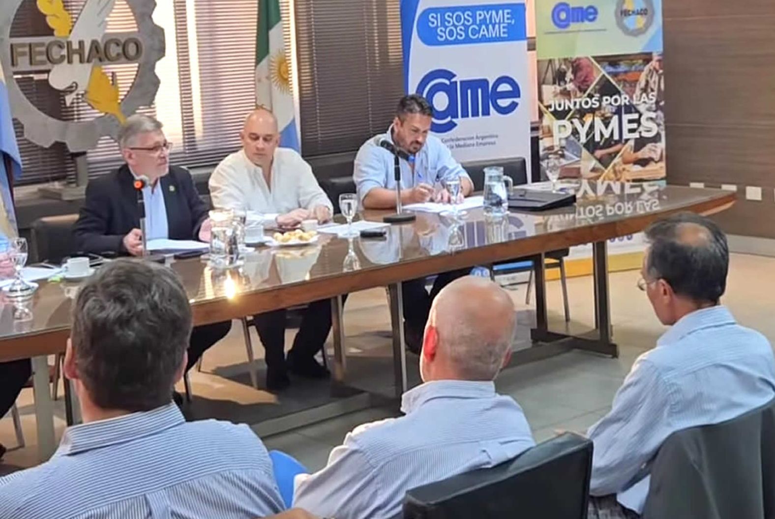 El presidente de la Administración Provincial del Agua, APA, Jorge Pilar, estuvo en un encuentro con emprendedores, comerciantes y productores, convocada por la Comisión Directiva de la Federación Económica del Chaco, FECHACO. En esta reunión, junto al presidente de la entidad, Ernesto Oscar Scaglia, se trataron temas vinculados con una agenda de trabajo trazada por el organismo provincial y se plantearon acciones a futuro, en conjunto, para beneficio de las diferentes actividades productivas y comerciales que estaban representadas en dicho encuentro.