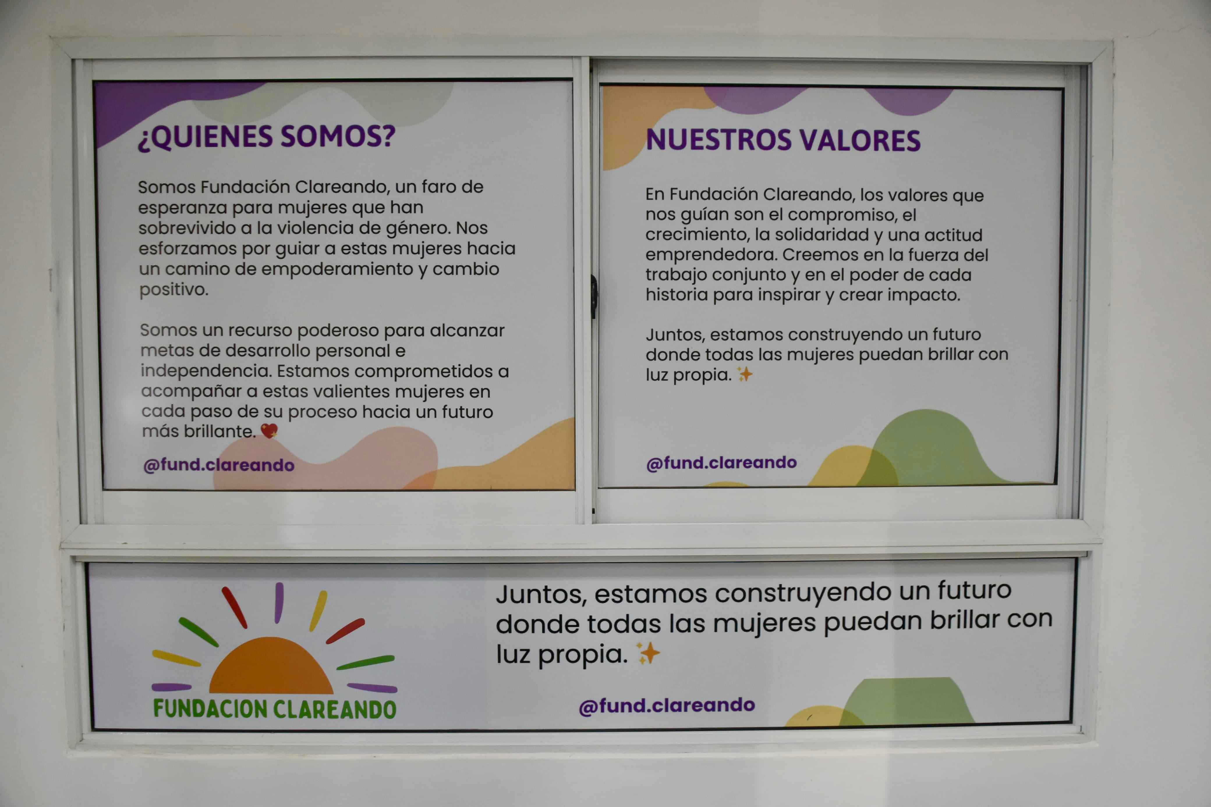 La Fundación “Clareando” es un espacio que busca acompañar y guiar a mujeres que han sobrevivido a la violencia de género hacia un camino de empoderamiento y cambio positivo, a fin de que puedan alcanzar metas para su desarrollo personal e independencia, enseñándoles oficios y brindándoles un espacio empático y seguro. “Clareando” tiene como base los valores de compromiso, crecimiento, solidaridad y actitud emprendedora, porque reafirman que la creencia de que la fuerza del trabajo conjunto y el poder de cada historia, de cada experiencia sirven para inspirar y generar impacto.