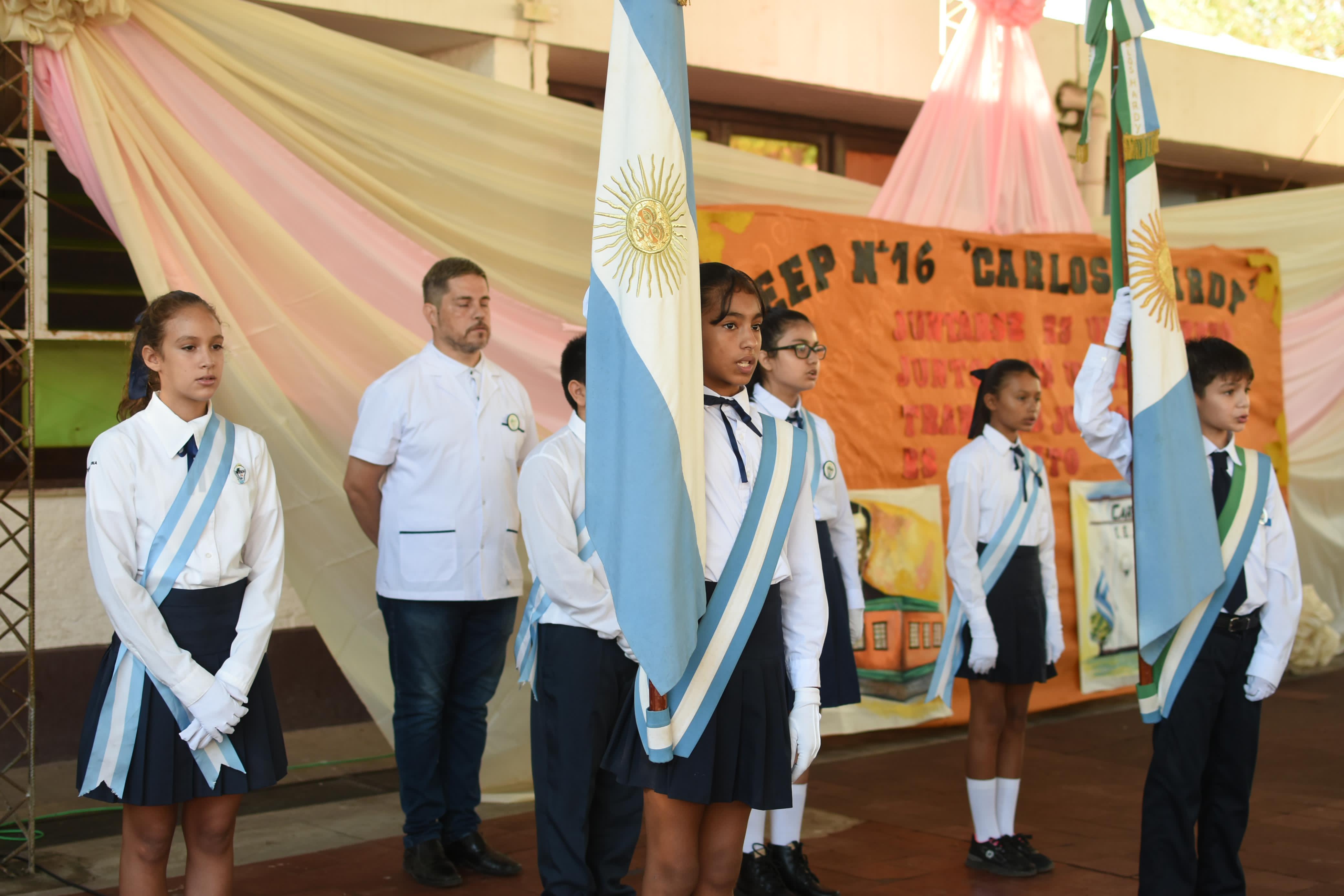 La directora de la EEP Nº 16, Isabel Mendoza, dio la bienvenida a la comitiva que acompañó a Zdero en la que estuvo el ministro de Infraestructura, Obras y Servicios Públicos, Hugo Domínguez; la ministra de Desarrollo Humano, Sonia Galarza; el diputado Patricio Pavón; y la presidenta del IPRODICH, Ana María Mitoire.