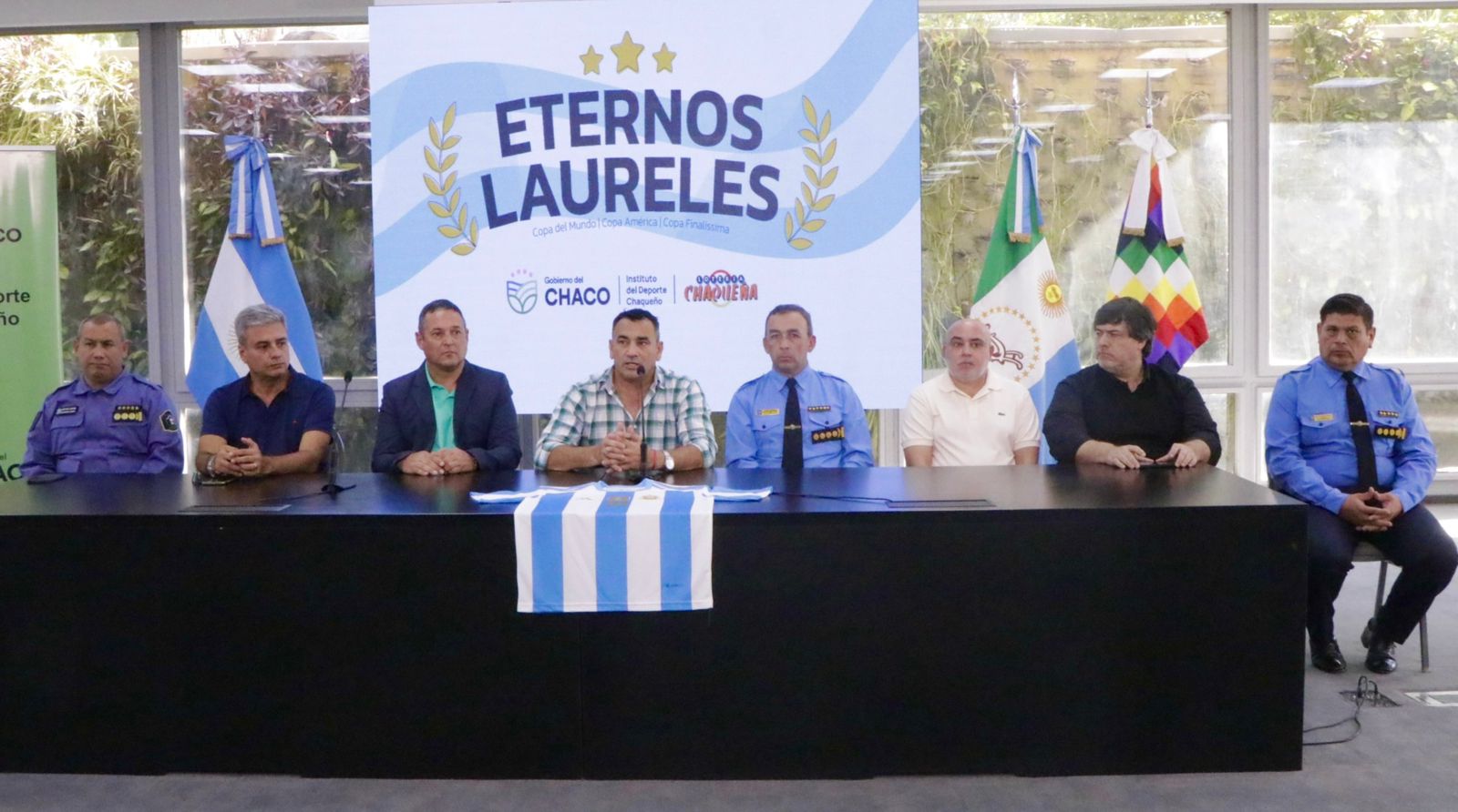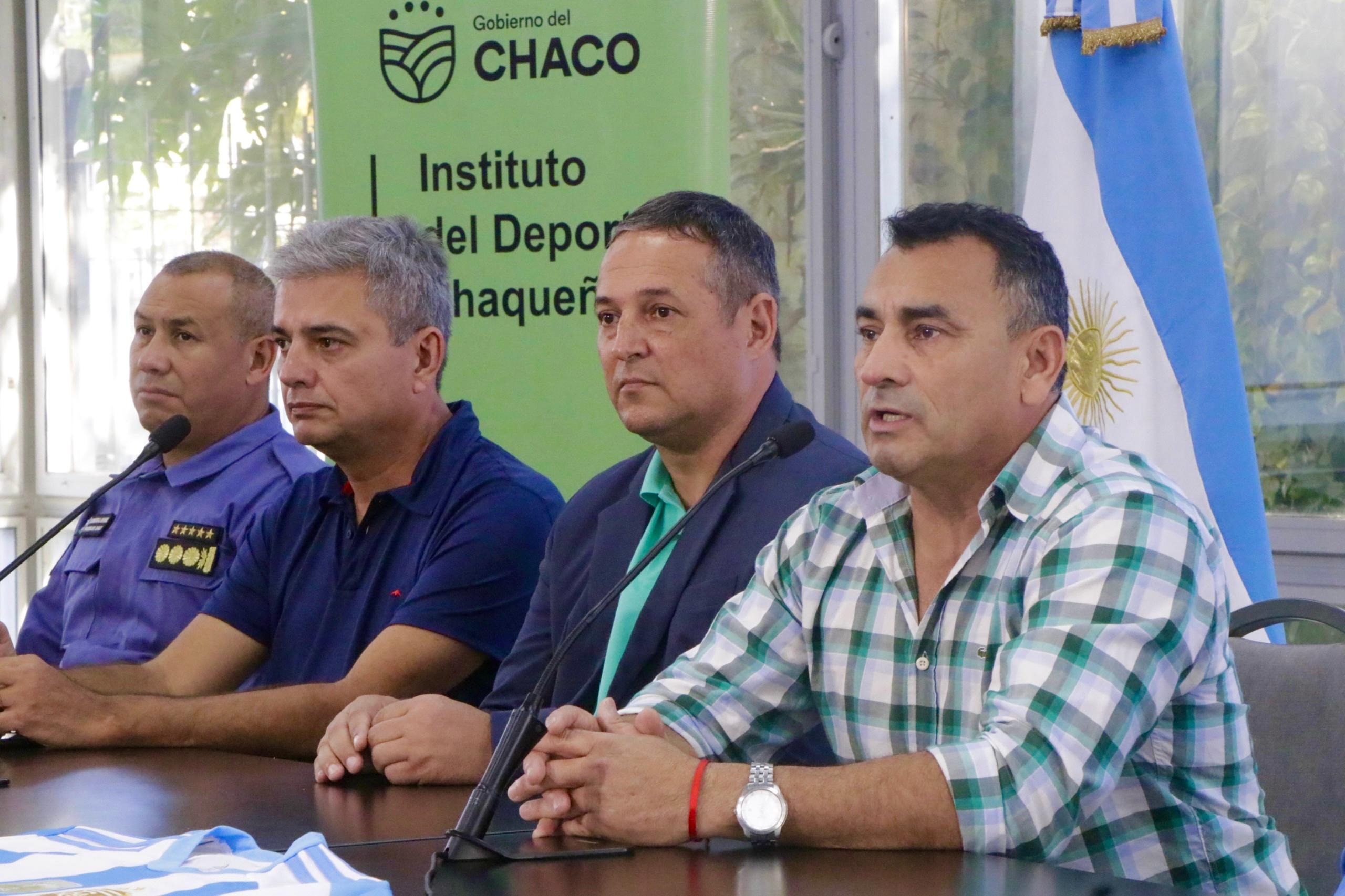 El anuncio fue efectuado, esta mañana, en el salón Obligado de Casa de Gobierno por el presidente del Instituto del Deporte Chaqueño profesor Fabio Vázquez en compañía del vicepresidente Gabriel Pellegrini, el jefe de policía comisario general Fernando Romero, el subjefe comisario general Manuel Silva, Cristian Duran director del CACP policial, Raul Mosqueda presidente de la Liga Chaqueña de Fútbol, Héctor Gómez presidente de For Ever, Edison Omar Rodríguez (h) vicepresidente del Círculo de Periodistas Deportivos y Luis Rudaz de la fundación Fair Play.