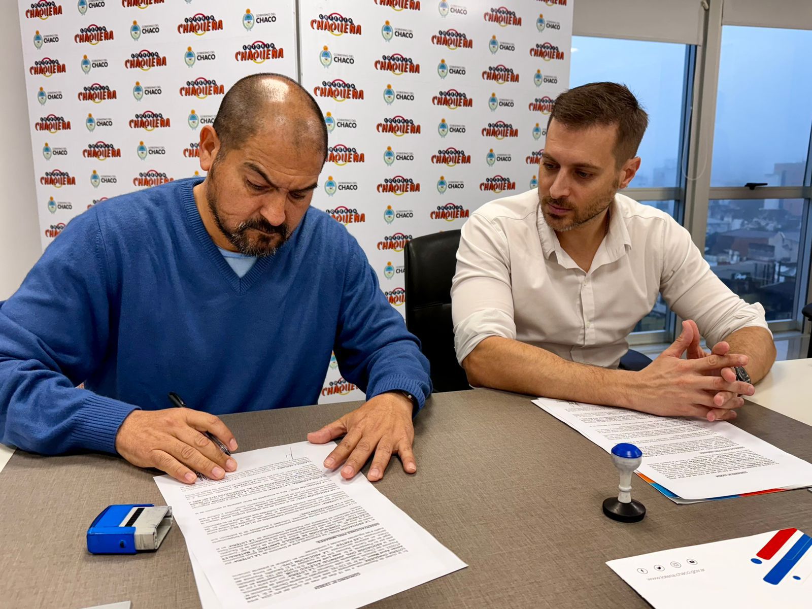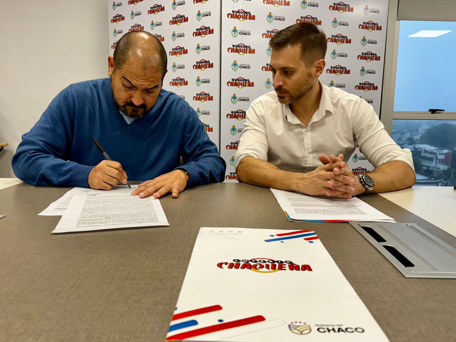 El presidente de Lotería Chaqueña, Lucas Apud Masín y el titular del Juventud Atletic Club de El Sauzalito, José Aranda, firmaron hoy un acuerdo para importantes mejoras en la entidad deportiva.