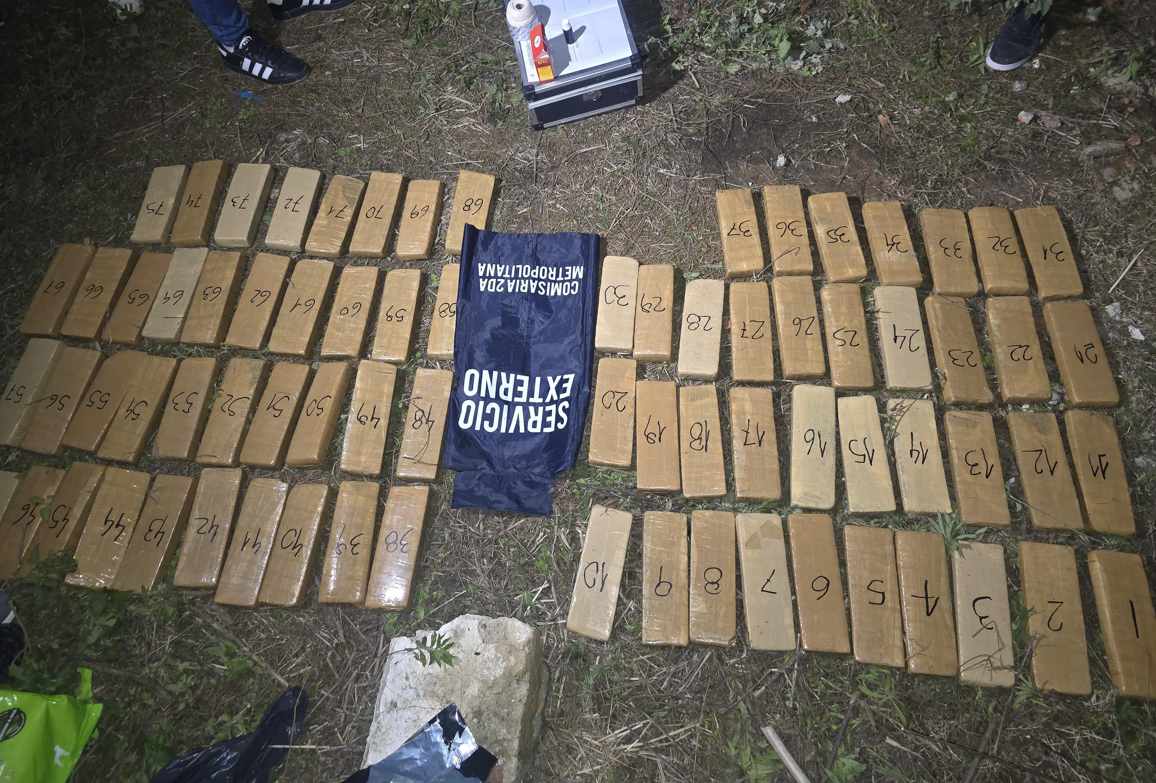 Tras asegurar la zona y verificar el contenido de los paquetes abandonados, se constató que se trataba de 53 kilogramos de marihuana acondicionados en envoltorios tipo “ladrillo”. Sustancia que fue confirmada por el personal de la División Microtráfico.