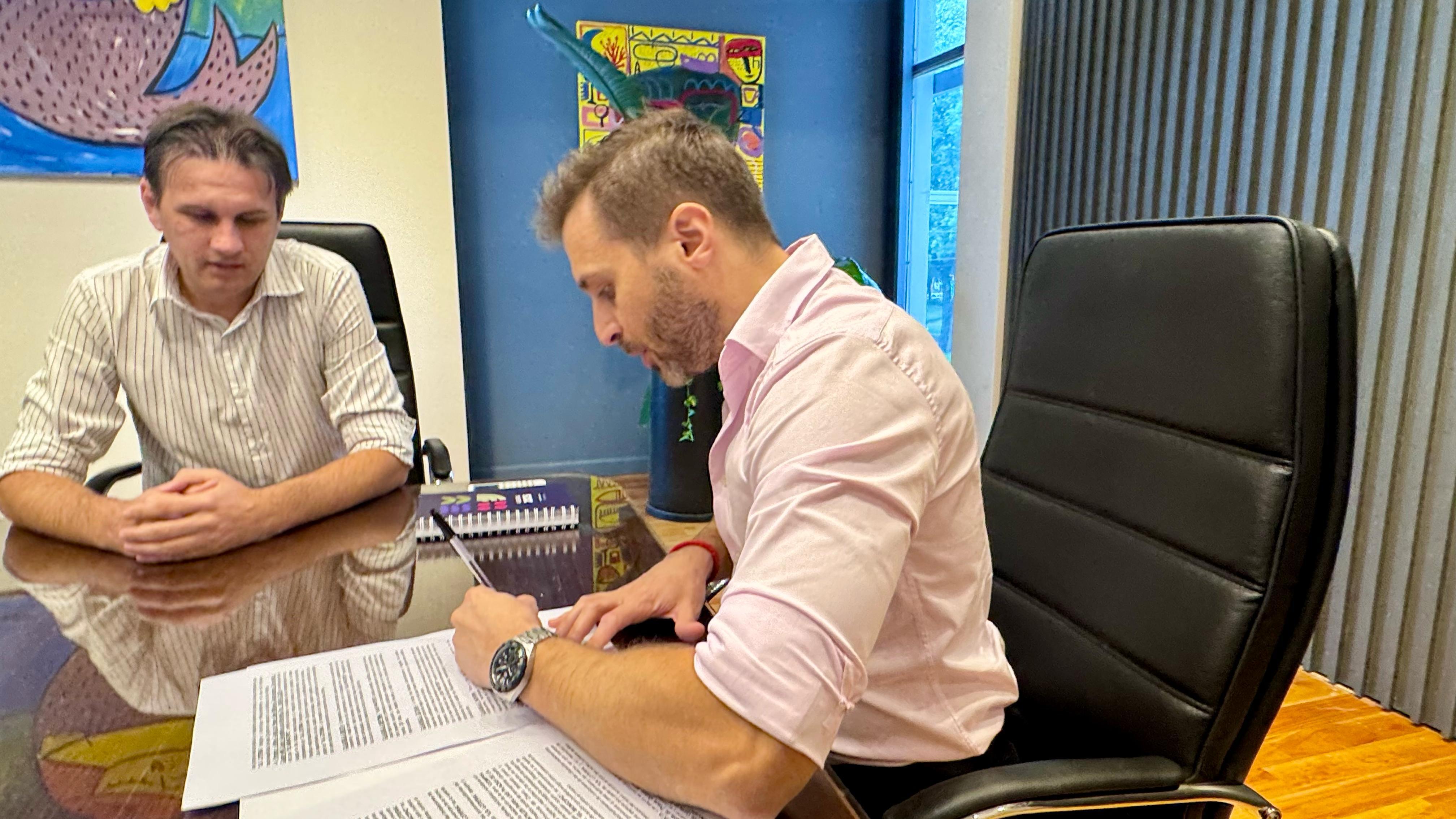 El presidente de Lotería Chaqueña, Lucas Apud Masín y el intendente de Fontana, Fernando Cuadra, firmaron un convenio que permitirá fomentar la recreación y esparcimiento en la ciudad.