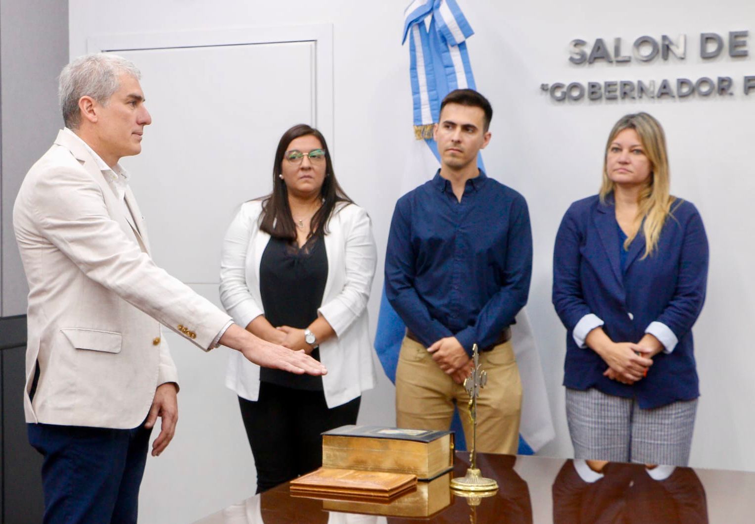 En el Salón de Acuerdos, de Casa de Gobierno, se llevó a cabo la asunción de los nuevos subsecretarios, quienes desarrollarán las tareas asignadas. Acompañaron en el acto de esta mañana, la secretaria general de gobierno, Carolina Meiriño y subsecretarios pertenecientes al Ministerio de Desarrollo Humano del Chaco.