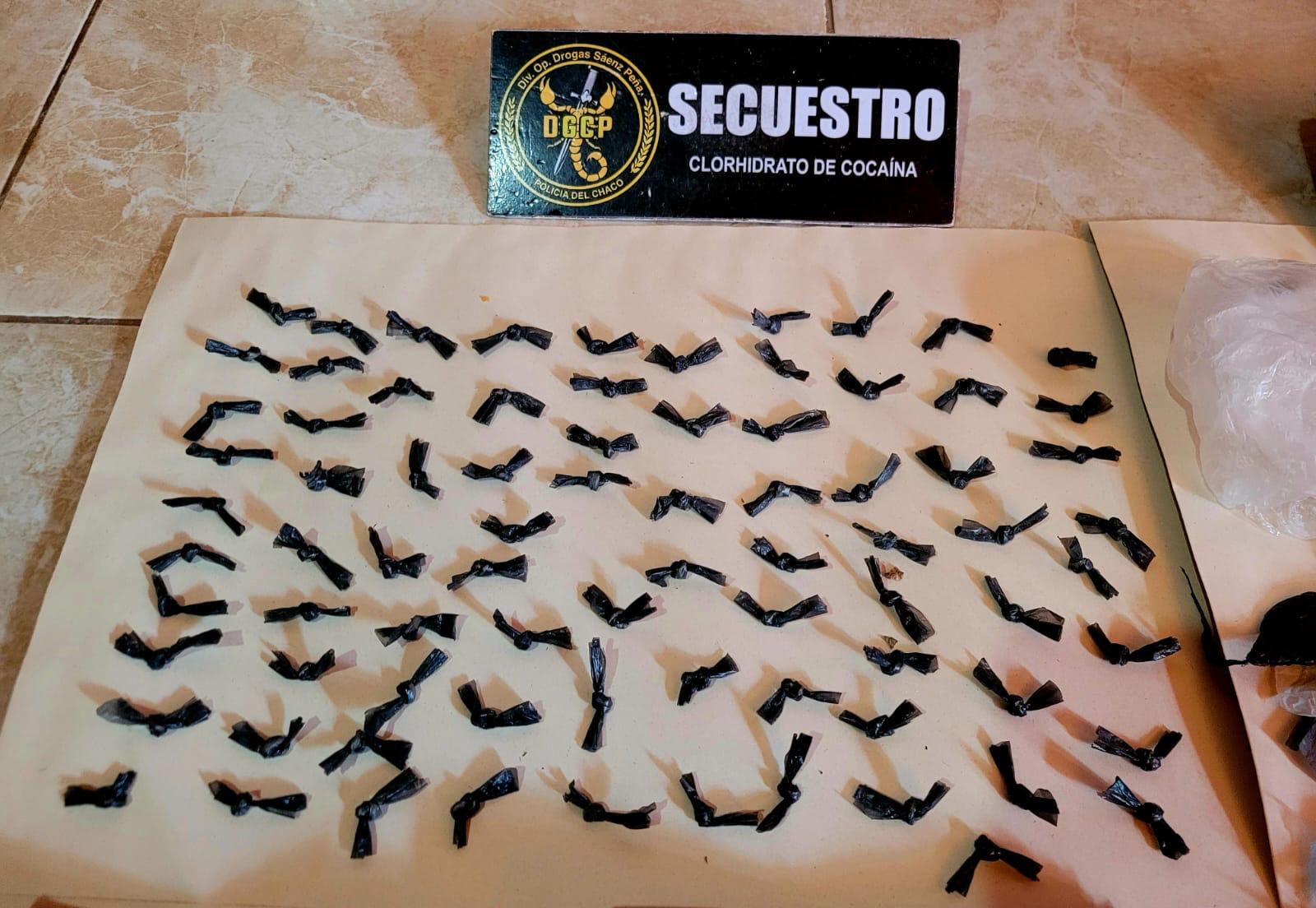 Al finalizar las diligencias se pudo contabilizar el secuestro de 490 envoltorios de cocaína con un peso de 111,6 gramos, un envoltorio compacto de marihuana que pesó 10,2 gramos. Además de $5.806.550,00 en efectivo, siete celulares, dos balanzas de precisión, una moto y elementos utilizados para el corte y distribución de los estupefacientes.