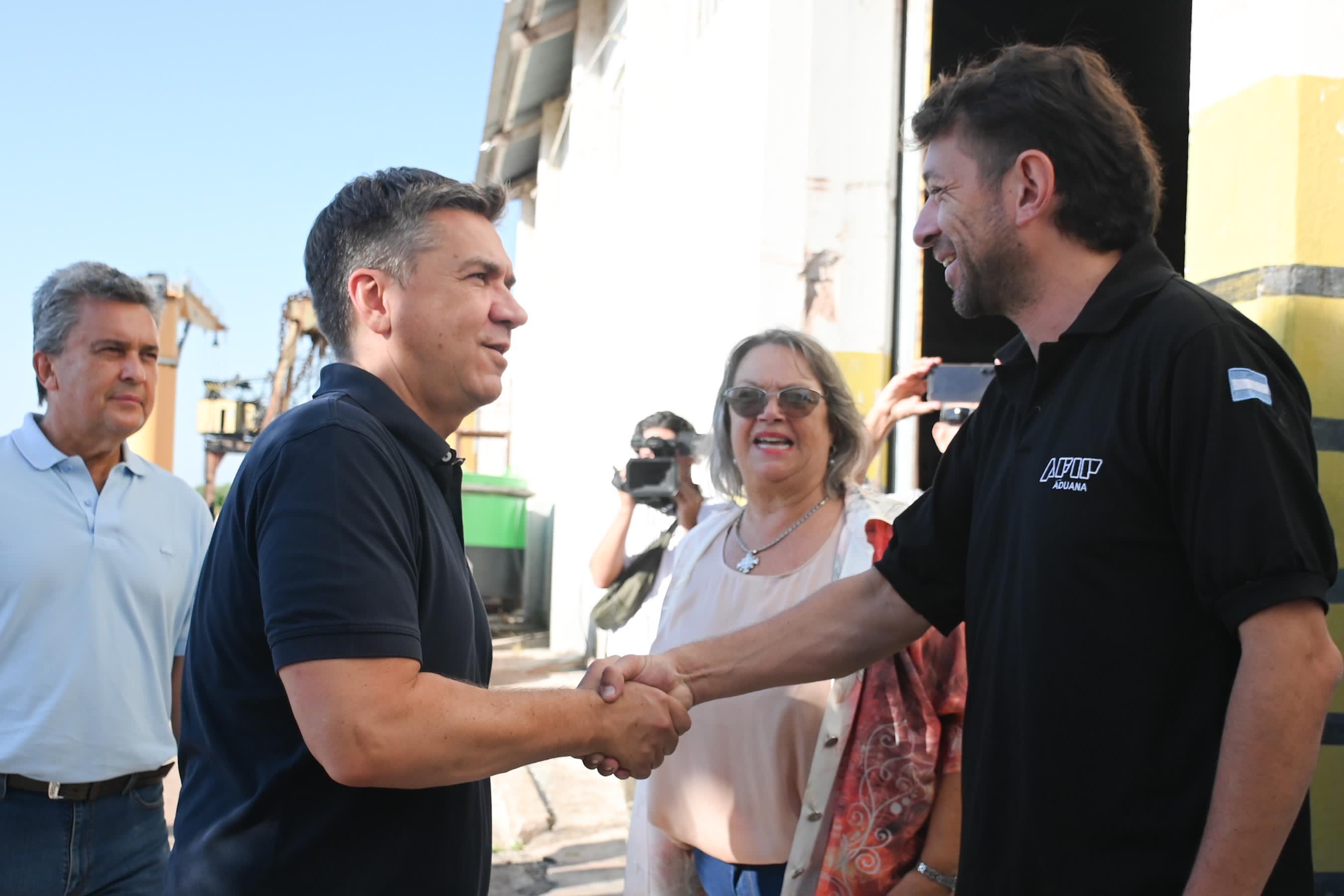 Acompañaron al Gobernador, el ministro de la Producción y el Desarrollo Económico Sustentable, Víctor Zimmermann; la administradora del Puerto de Barranqueras, Alicia Azula, la presidente de la Legislatura Carmen Delgado y personal de Aduana y Prefectura.