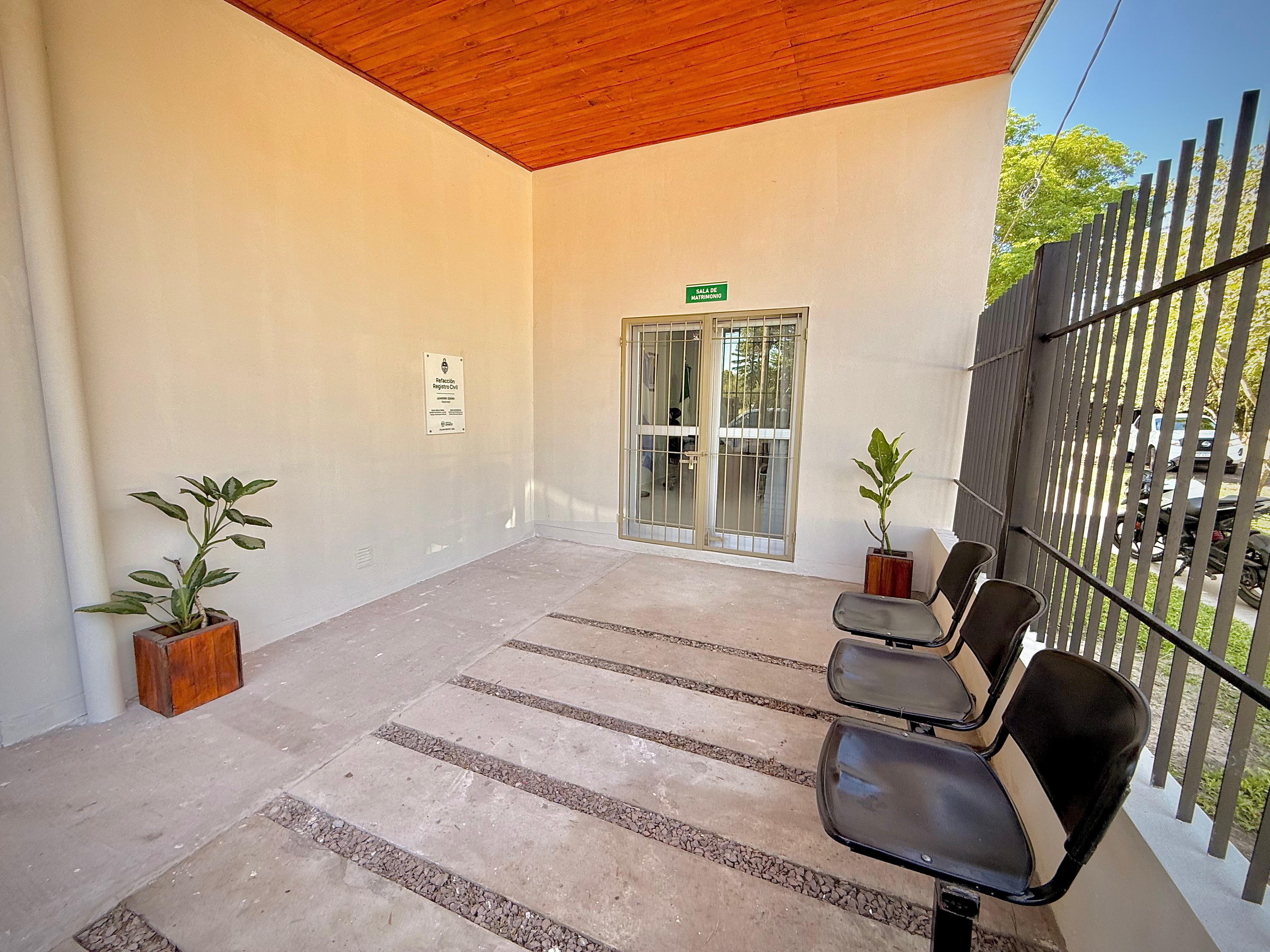 La intervención incluyó la construcción de un nuevo portal de acceso, mejoras en la visibilidad y seguridad del ingreso principal, y la refuncionalización de espacios interiores, incorporando una oficina administrativa de mayor dimensión, sala de matrimonios, archivo y sanitarios para el personal.