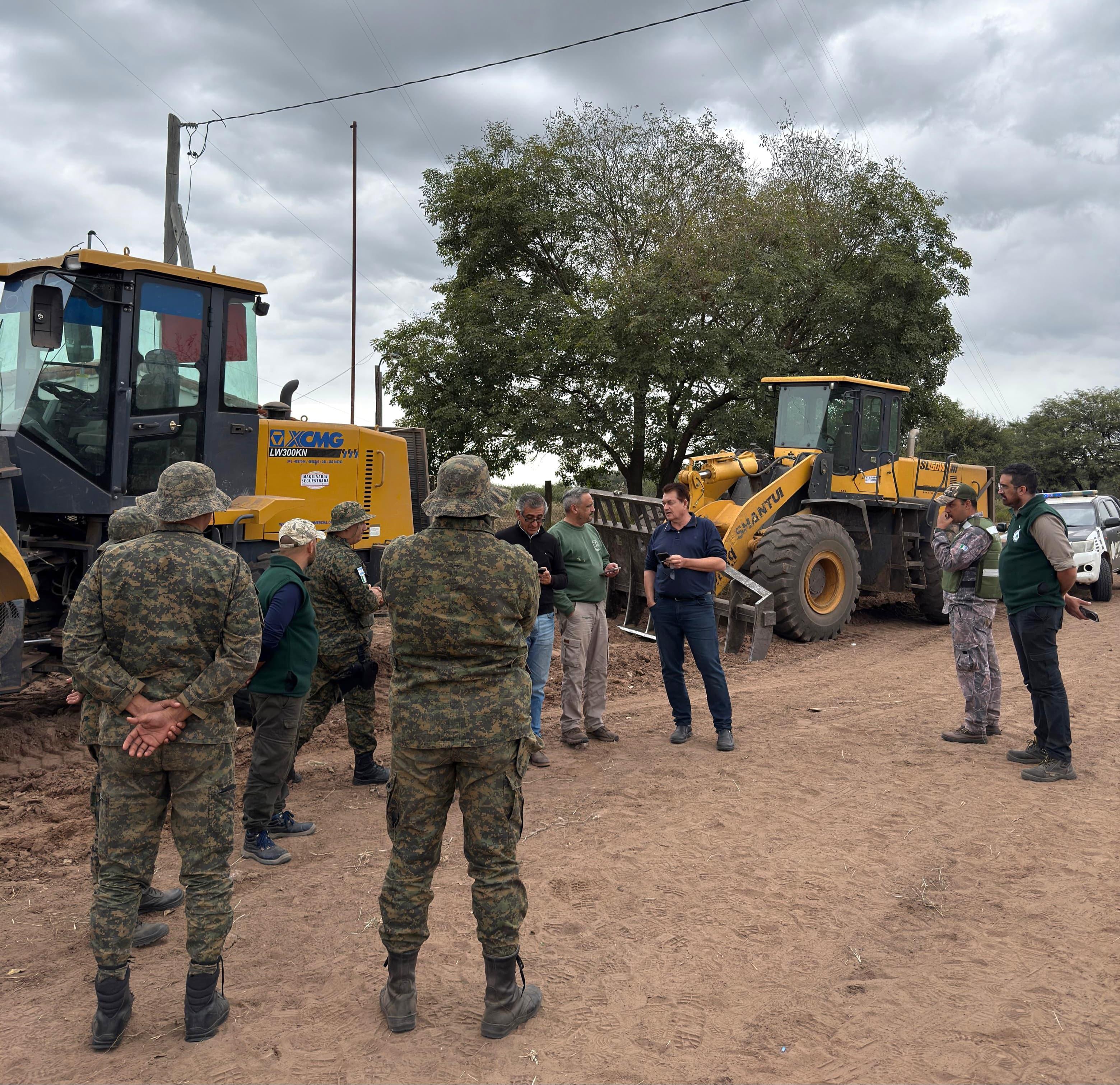 El ministro de la Producción, Oscar Dudik, junto al titular de la Dirección de Bosques, Gustavo Garcia, encabezaron un operativo de fiscalización forestal que terminó con la detención de dos desmontes ilegales y el secuestro de maquinarias en el paraje el Guanaco al norte de Pampa del Infierno.