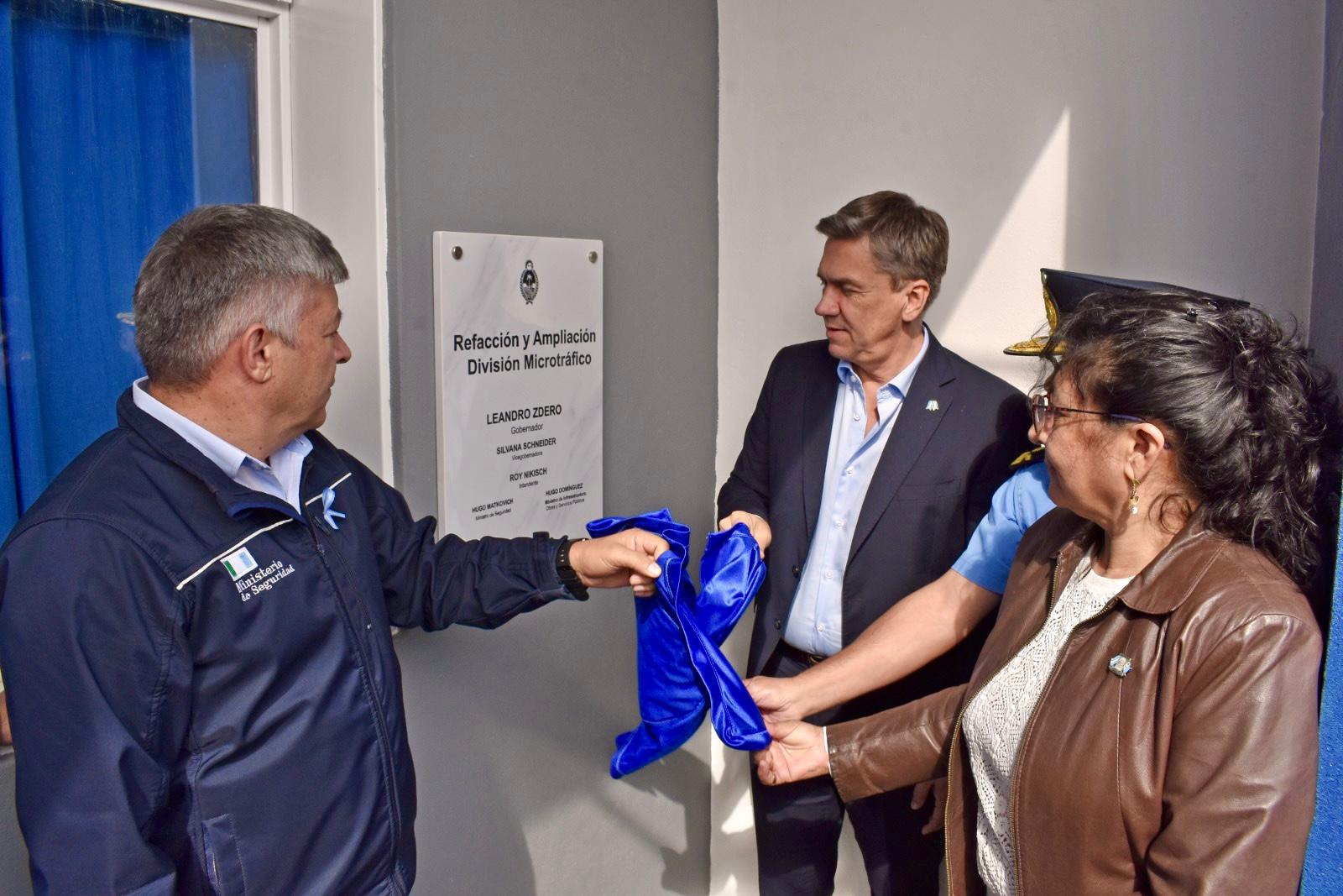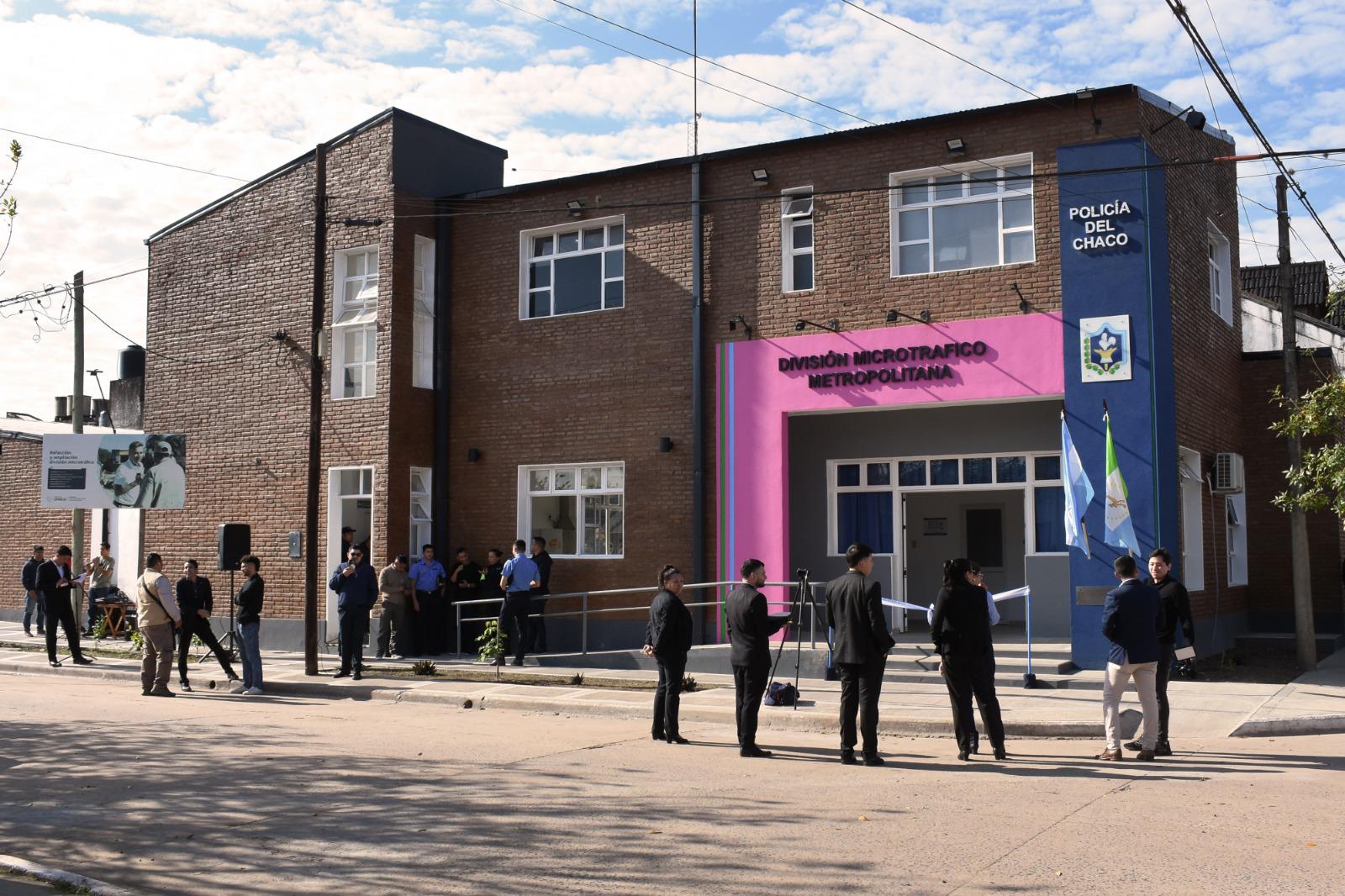 El gobernador Leandro Zdero, junto al ministro de Seguridad, Hugo Matkovich, inauguró, este viernes, la remodelación y refacción integral de la División Microtráfico. “Es el compromiso que teníamos con el Jefe de Seguridad de la Provincia, e implementar este Plan de Seguridad que también tiene que tener la garantía de tener a los delincuentes tras las rejas y no en las comisarías”, aclaró el mandatario para “descomprimir las comisarías”.