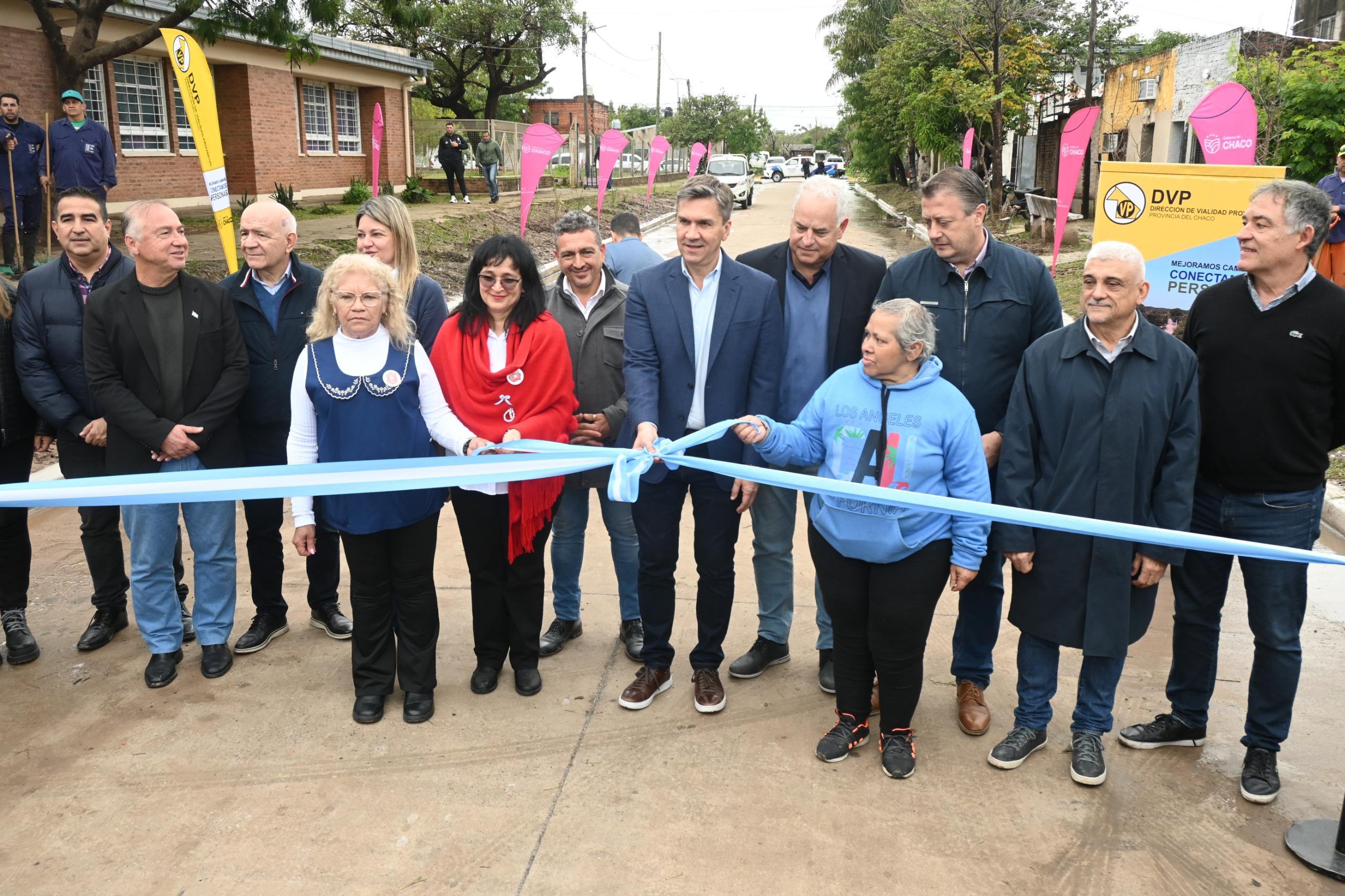 De este modo, las autoridades habilitaron las obra de pavimento financiada íntegramente con fondos provinciales a través de la DVP, incluyendo 72 rampas para personas con discapacidad ejecutadas en los puntos estratégicos de circulación del barrio, que mejoran la accesibilidad e inclusión y, junto a los desagües pluviales y la iluminación led “forman parte del realce del perfil urbano de la ciudad”, aseguró Zdero, acompañado también por el ministro de infraestructura, Hugo Domínguez, la secretaria general, Carolina Meiriño; el sub administrador de Vialidad Gustavo De Martini; el presidente de Secheep, José Bistoletti; el secretario económico de la municipalidad de Rcia, Ricardo Roffé y el diputado provincial Carlos Salom.