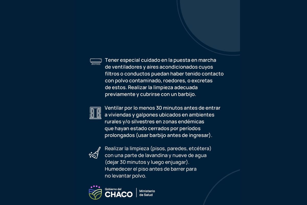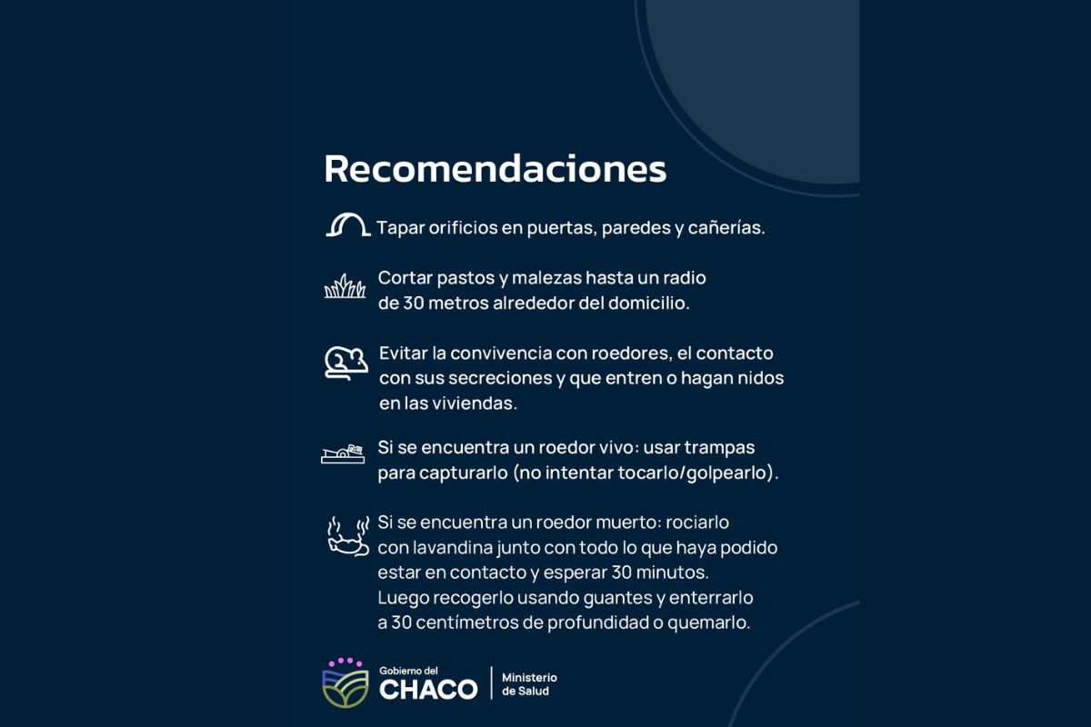 Luego de la confirmación de un caso de Hantavirus en la provincia, el Ministerio de Salud del Chaco insta a la población a seguir una serie de recomendaciones a tener en cuenta por posible presencia de roedores en domicilios o zonas cercanas.