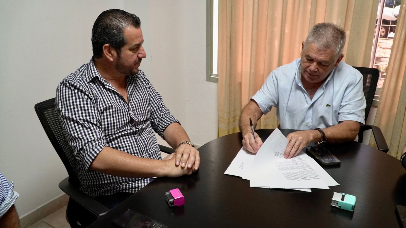 La firma del convenio de reconocimiento de deuda y pago del servicio de Sameep, por parte de la Municipalidad de Las Garcitas fue encabezada hoy por el presidente de la empresa, el Ing. Nicolás Diez y el jefe comunal Sergio Dolce. También participaron de la reunión el vocal, contador Rubén Custiniano, el gerente general, Ing. Edgardo Altamirano y la gerente Comercial Interior, contadora Yanina Ortíz.