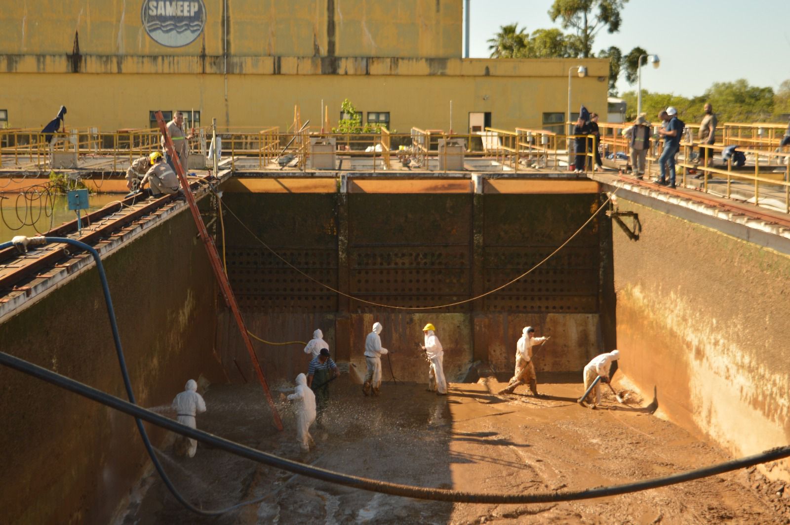 En tanto, el coordinador de zona I, Jonathan Roa, explicó “el equipo de mantenimiento general a cargo de Héctor Gergeli está realizando la limpieza de uno de los decantadores, es un trabajo que conlleva mucho esfuerzo físico y lo están ejecutando los trabajadores de Sameep. Agradecemos y reconocemos el compromiso con la empresa y con los vecinos de Resistencia”.