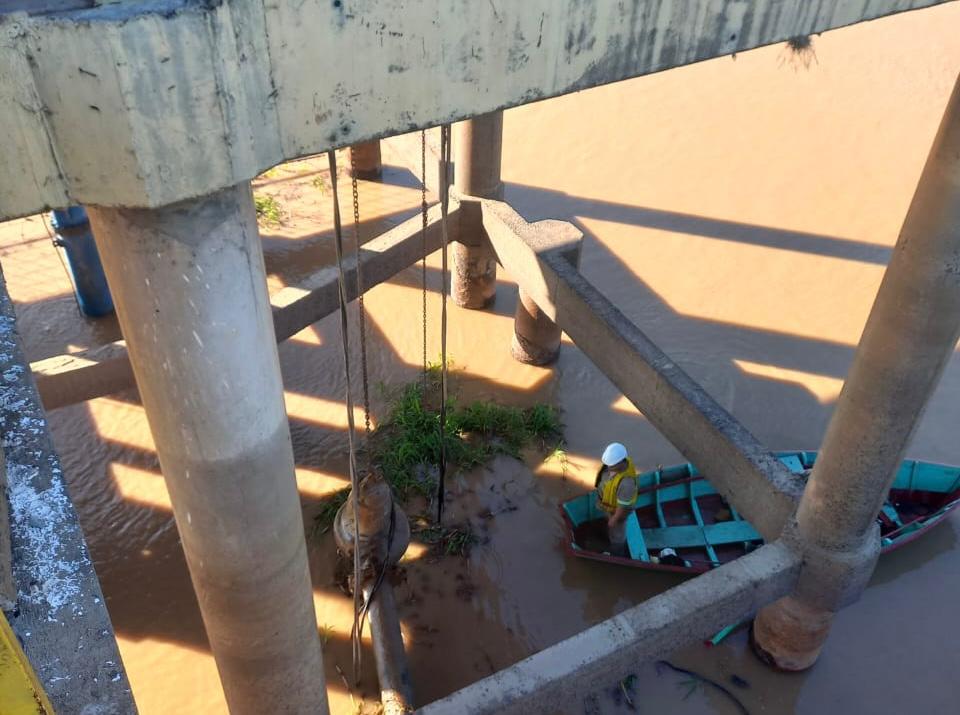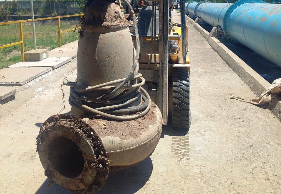 Atentos a las altas temperaturas que se están dando en la provincia y con el objetivo de asegurar el abastecimiento de agua potable en el Área Metropolitana (AMGR), agentes de la empresa realizaron trabajos preventivos y reemplazaron bombas de 800m3/hs en la obra de toma de Barranqueras.