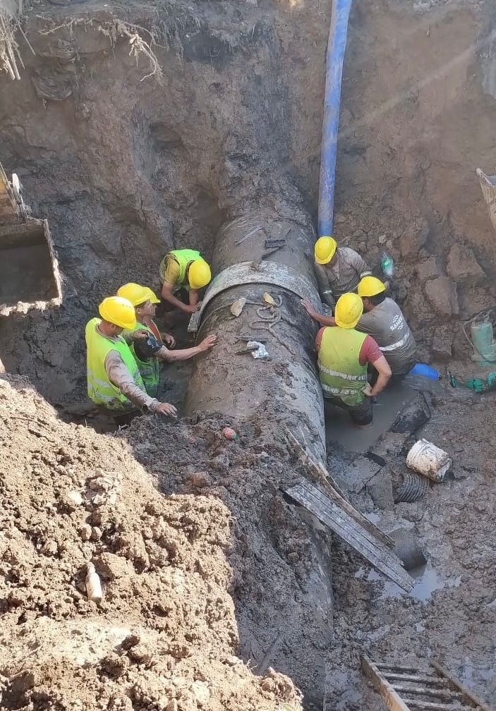 Si bien los trabajos fueron consumados de forma inmediata, el reabastecimiento demanda tiempo porque las cañerías son de un volúmen importante y lleva su tiempo poder cargarlas, con caudal y presión adecuadas. Además, las cisternas, que a través de sus equipos de bombeo impulsan el agua hacia las redes, deben trabajar de manera sincronizada para que no repercuta en otras roturas.