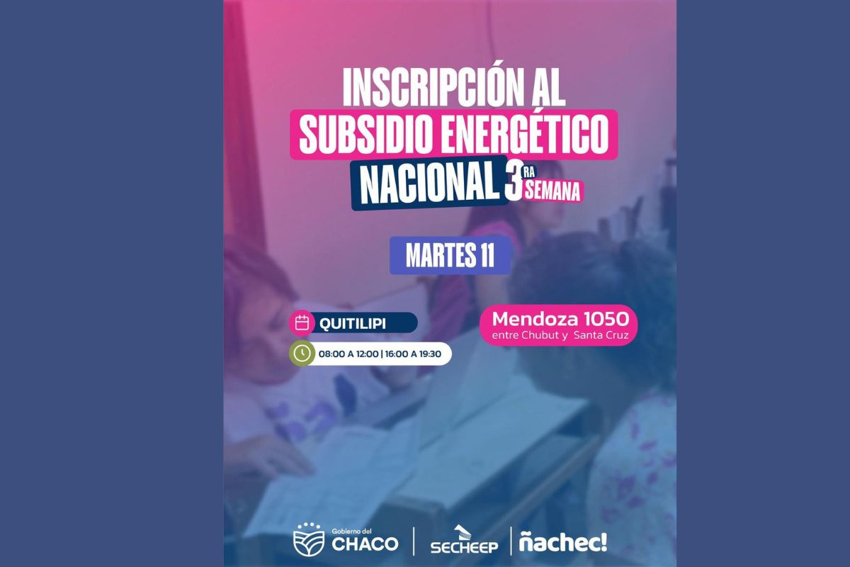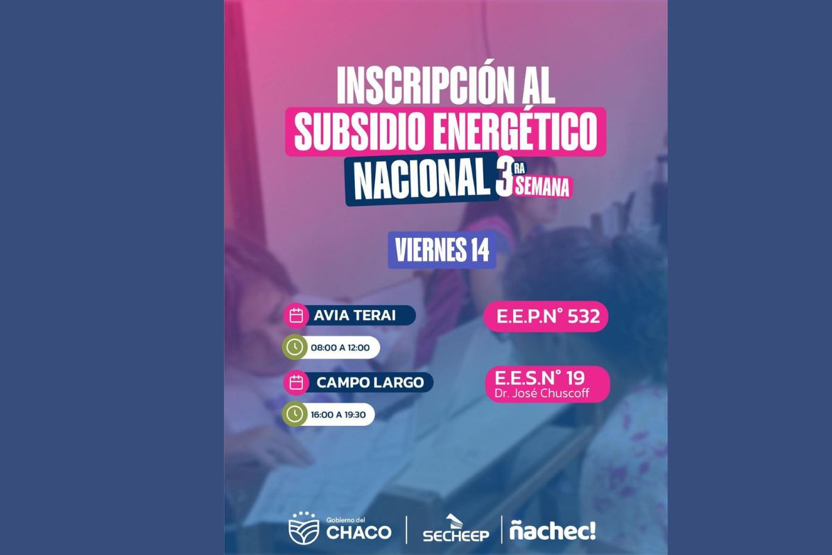 Del lunes 10/02 al viernes 14/02, junto a Ñachec, continuamos asesorando en el interior del Chaco para asesorarte sobre el Subsidio Nacional de Energía y brindarte toda la info sobre el Descuento de Verano implementado por el Gobierno Provincial.