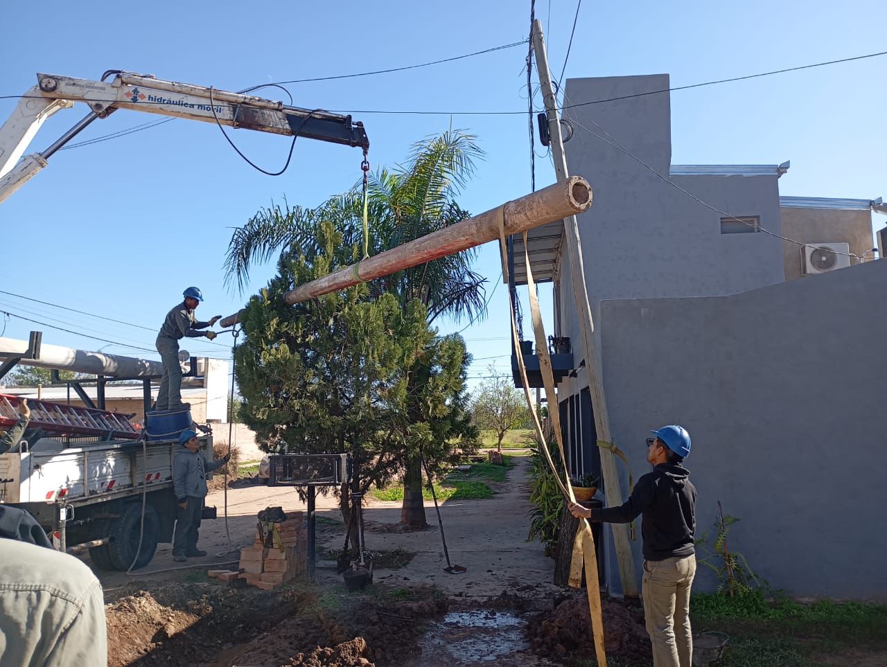 En la zona del impenetrable, son múltiples las intervenciones en localidades y parajes. A paso firme, continúa el reemplazo de postes madera por columnas de hormigón de la línea de media tensión entre Sauzal y El Sauzalito.