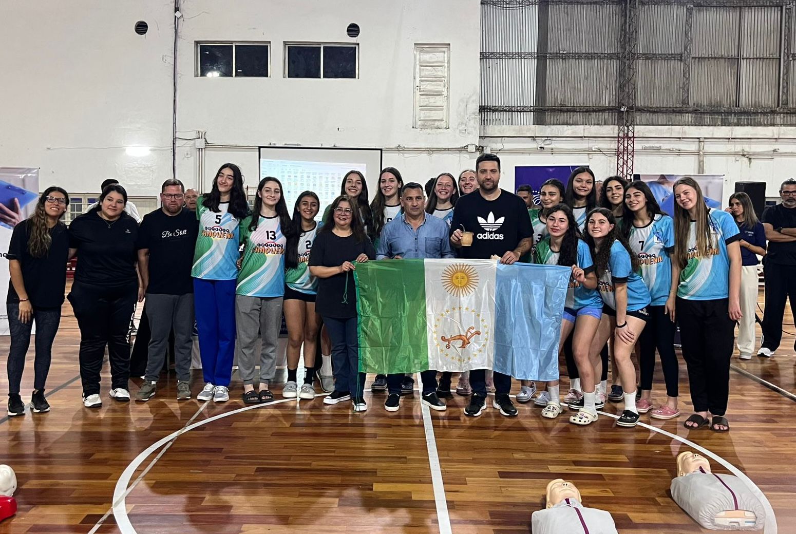 Durante la jornada de ayer, también se realizó un emotivo reconocimiento a la selección chaqueña de vóley sub 16, que representará a la provincia en el Campeonato Argentino a disputarse en Tucumán. En ese marco, la profesora Vázquez y Nora Gauna hicieron entrega de una bandera provincial al equipo.