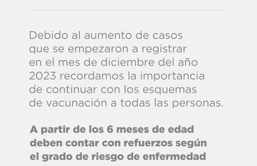 “Estamos nuevamente ante un crecimiento en el número de infectados de COVID, a partir de las últimas semanas del mes de diciembre del año 2023. Por eso, queremos insistir a la comunidad en general la importancia que tiene recibir las dosis de refuerzo para aquellos que tengan un esquema inicial o aquellos que no hayan iniciado directamente esquemas, el poder hacerlo.