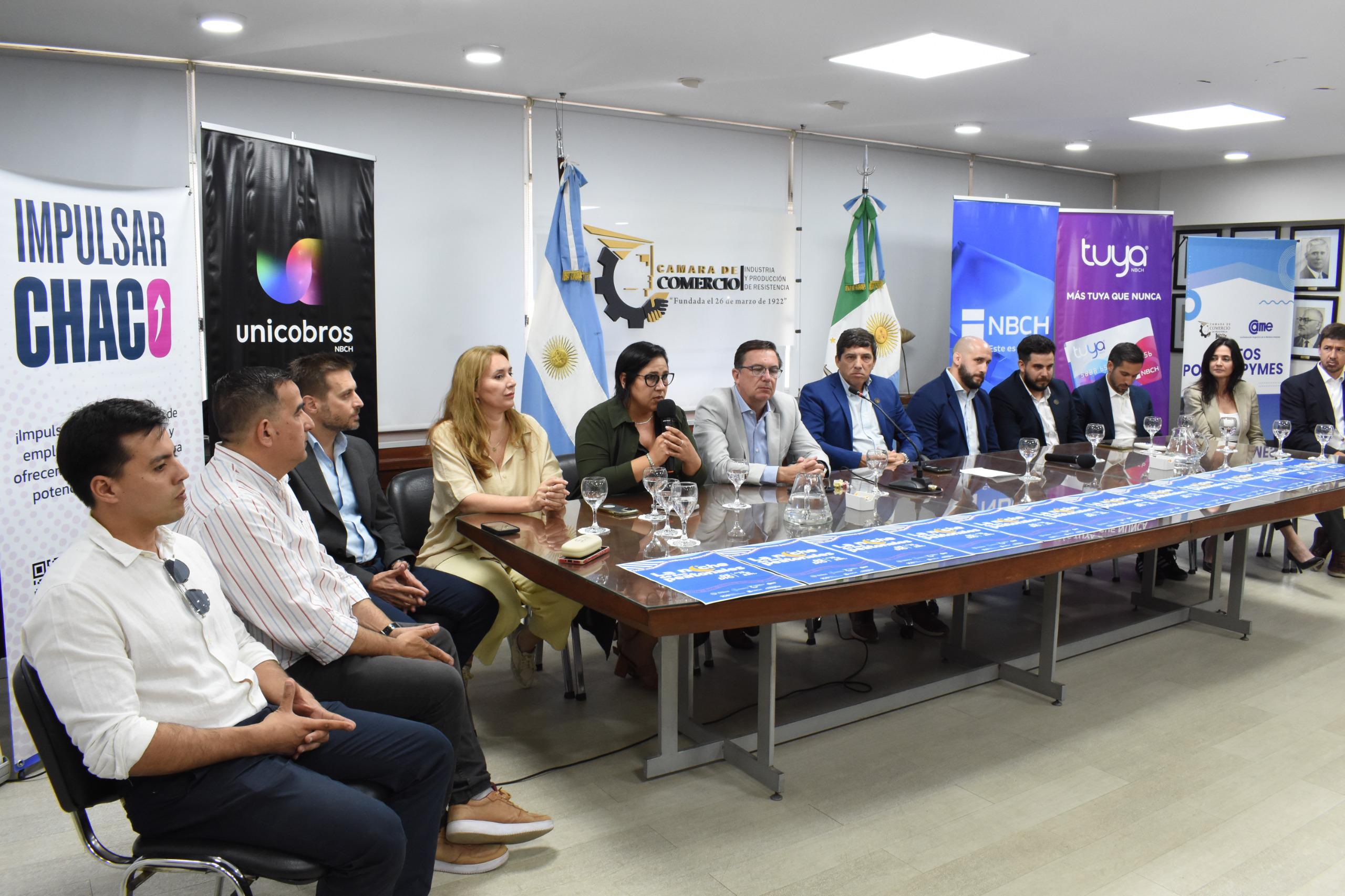 La presentación del evento estuvo encabezada por la subsecretaria de Trabajo Noelia Ibarra; el secretario coordinador de Gabinete, Livio Gutiérrez; el vocal de la Cámara de Comercio, Juan Martín Alonzo; y la jefa del departamento de Tarjetas de Créditos del NBCh, Magalí Berman.