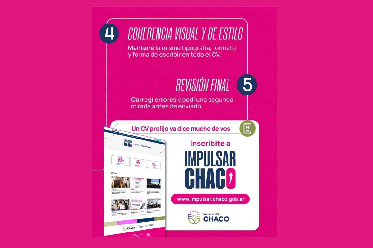 En este sentido, el programa Impulsar Chaco comparte una serie de recomendaciones claves para la correcta elaboración del CV y su posterior registro a la plataforma.