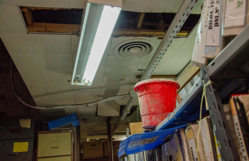 Los subsecretarios Jorge Nocenti (Obras Públicas) y Jorge Crisostolo (Proyectos y Planeamiento) del Ministerio de Infraestructura y Obras Públicas recorrieron, este martes, las oficinas ubicadas en el subsuelo de Casa de Gobierno donde constataron el deterioro y la falta de mantenimiento del inmueble y los bienes patrimoniales. “Tenemos un panorama desolador, la gente convive con humedad y goteras, y sin ventilación ya que están obstruidas”, indicó Crisostolo.
